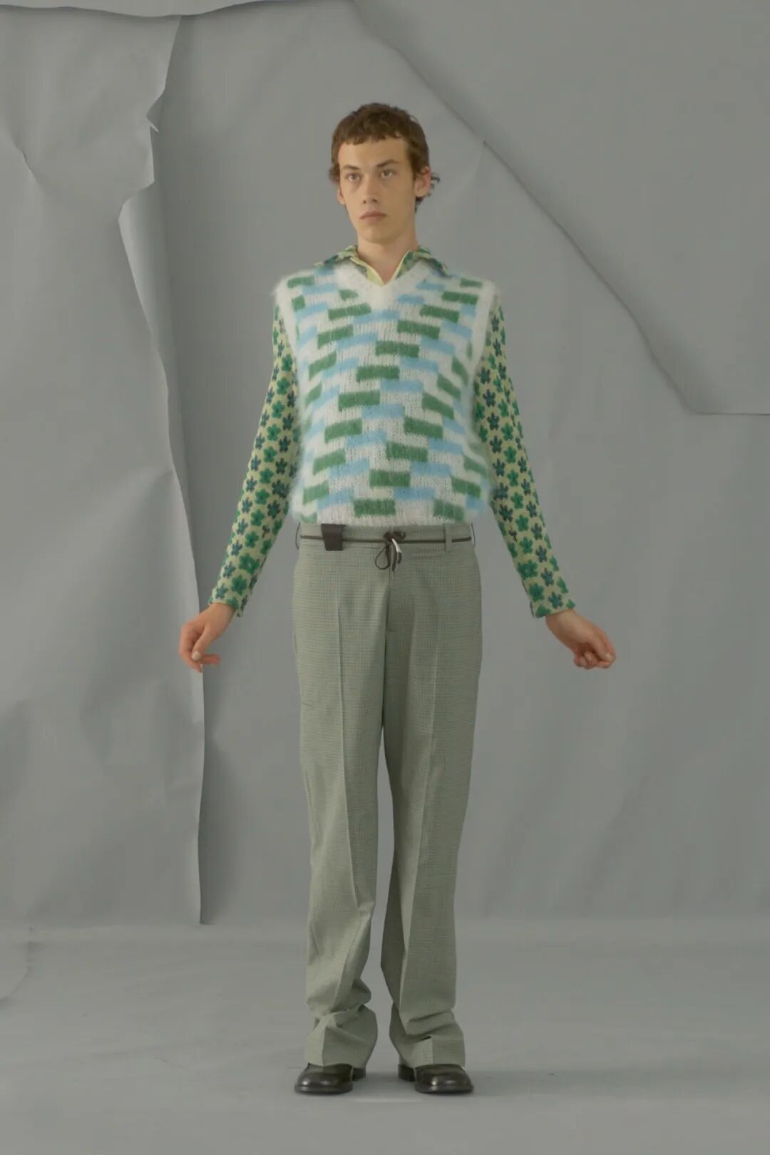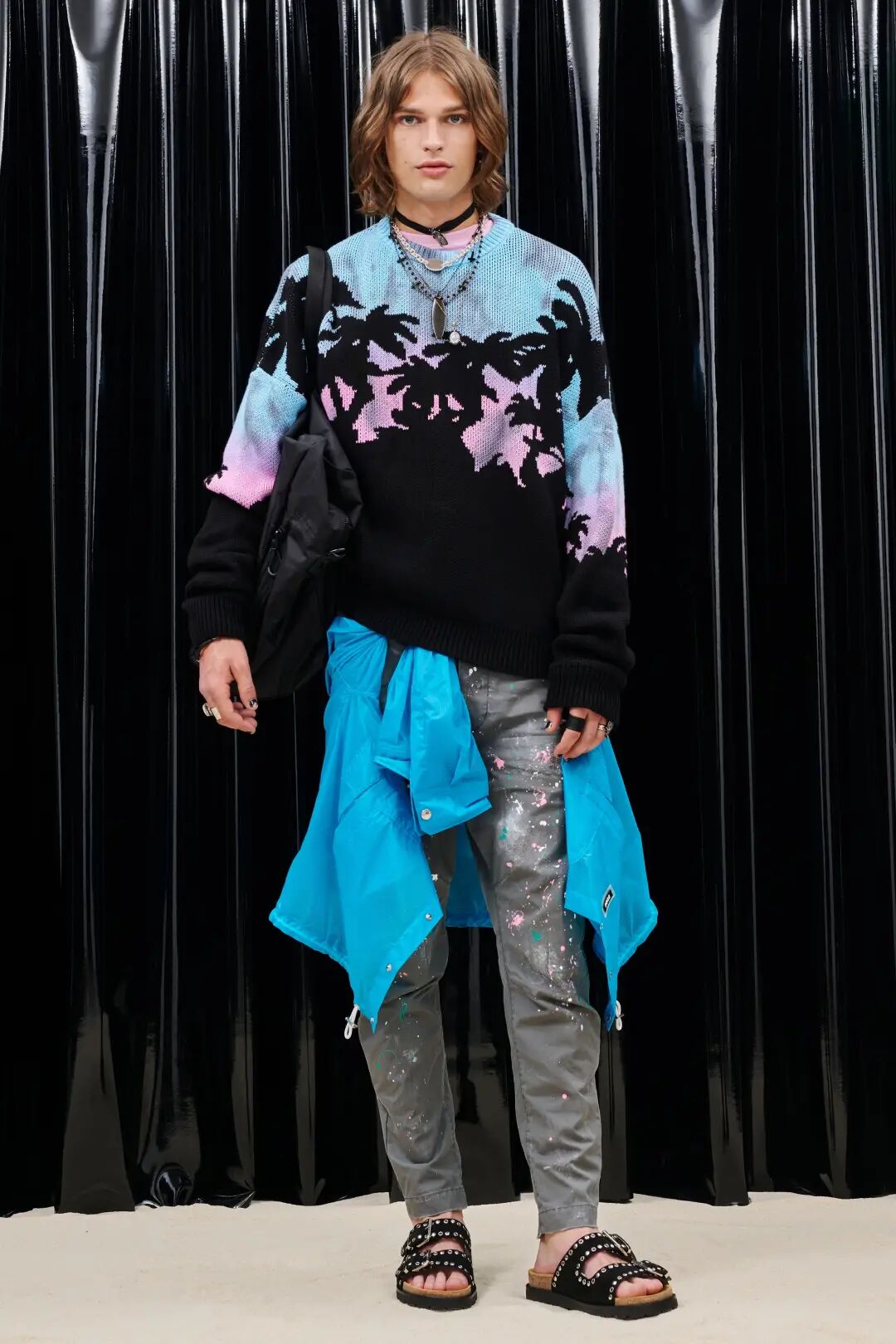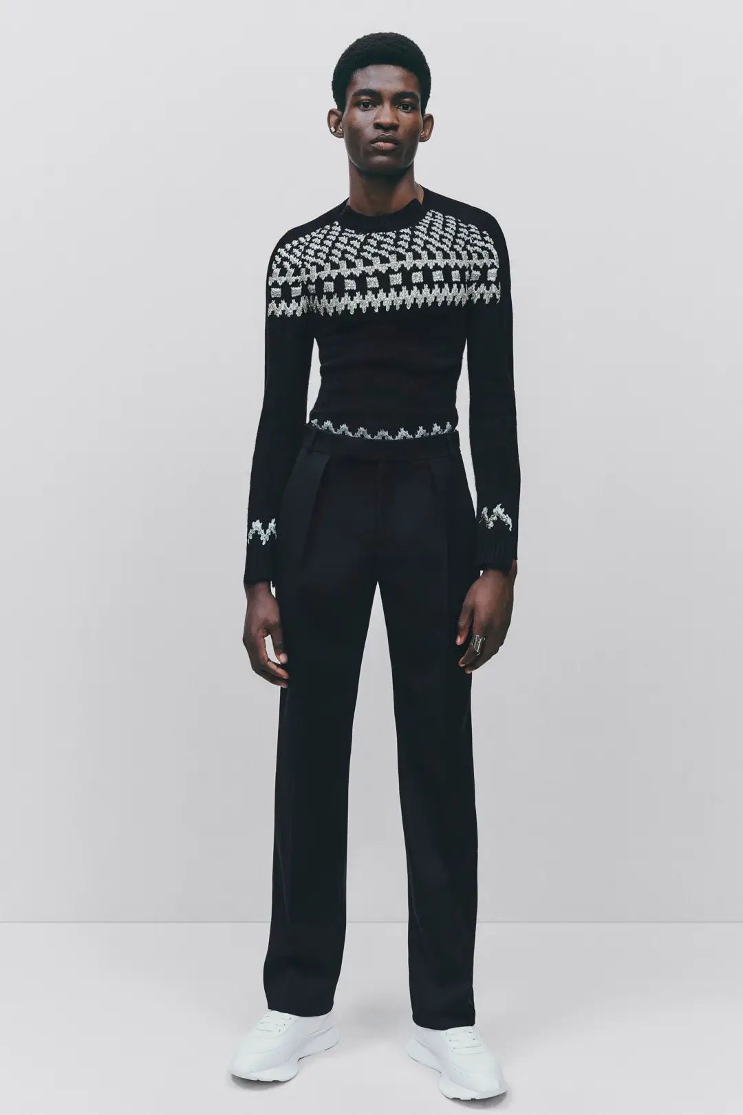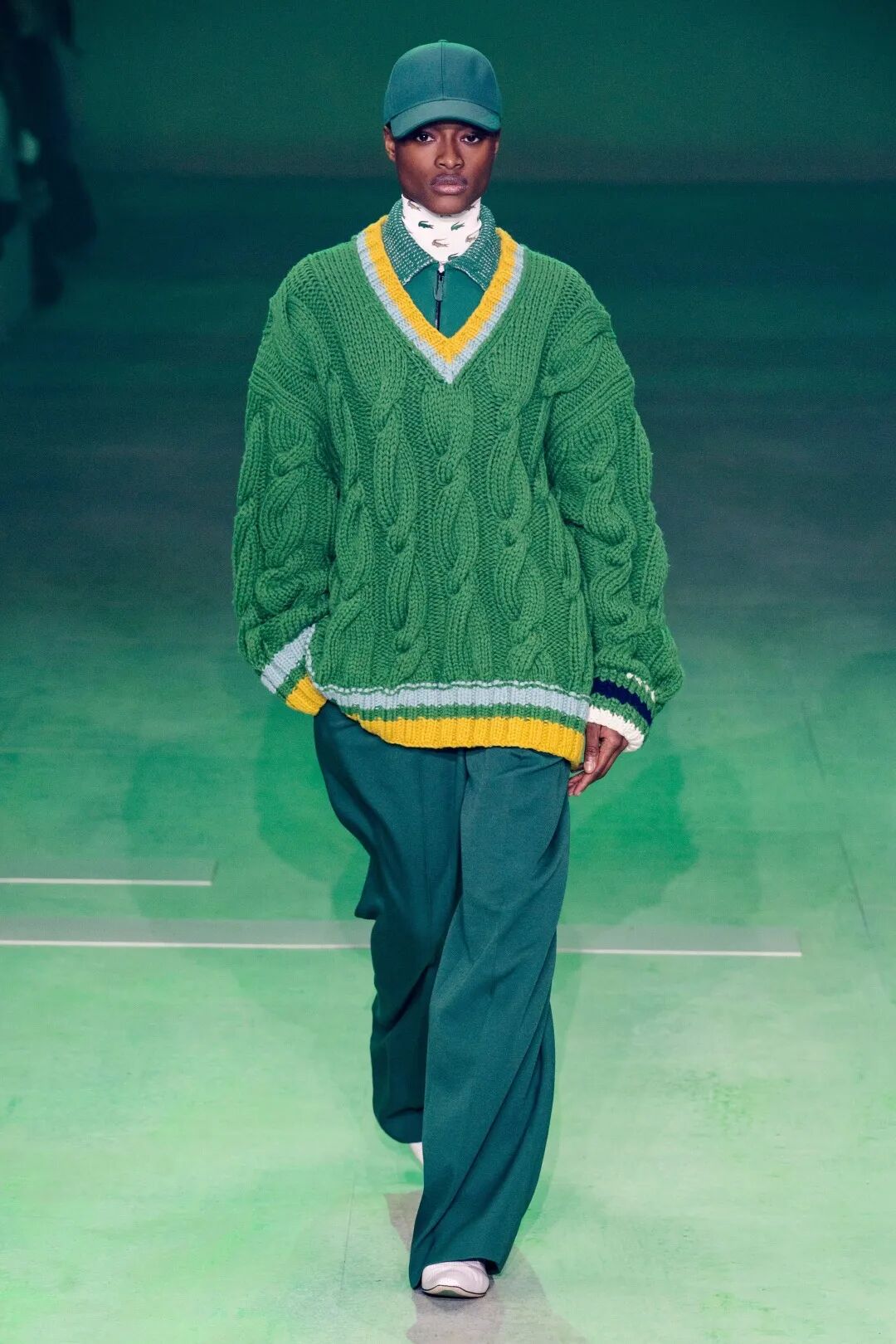 2022年进入最后倒计时,回顾今年最受市场欢迎的男装单品套衫TOP10里,提花图案、字母变幻和亮色点缀成为设计师重点设计方向。关注字母元素的工艺及字体的设计运用为服装增添画面层次感;在提花图案中则更加关注图案的设计和色彩的视觉呈现;采用小亮色以及辅料点缀,线面的组合设计营造出年轻活力感。