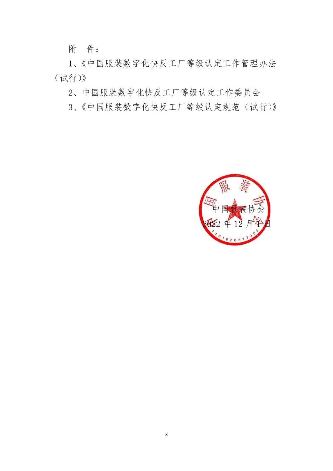 关于开展中国服装数字化快反工厂等级认定工作的通知