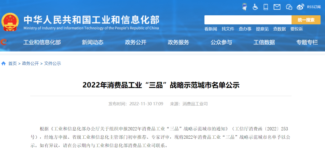 点击蓝字关注我们11月30日,工信部消费品工业司发布2022年消费品工业“三品”...