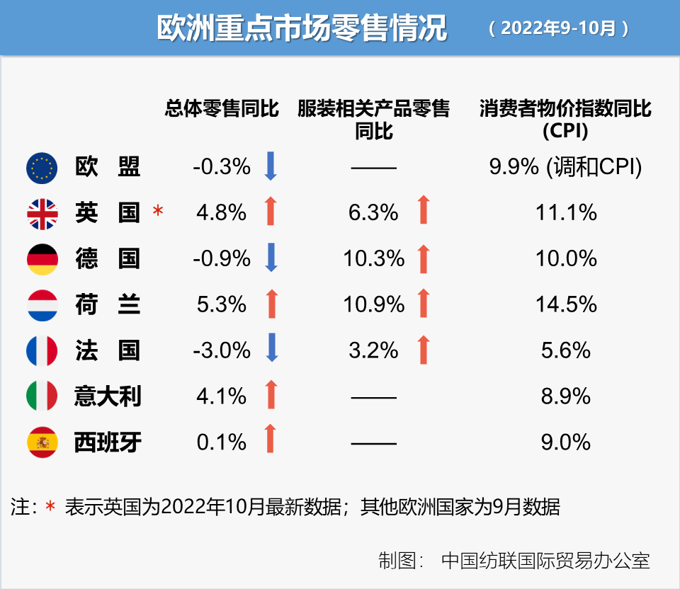最新官方数据显示,9-10月尽管全球多国通胀仍处高位,但在价格上涨等因素影响下,部分发达经济体零售市场表现逆势增长,服装服饰类产品零售呈小幅回暖态势。