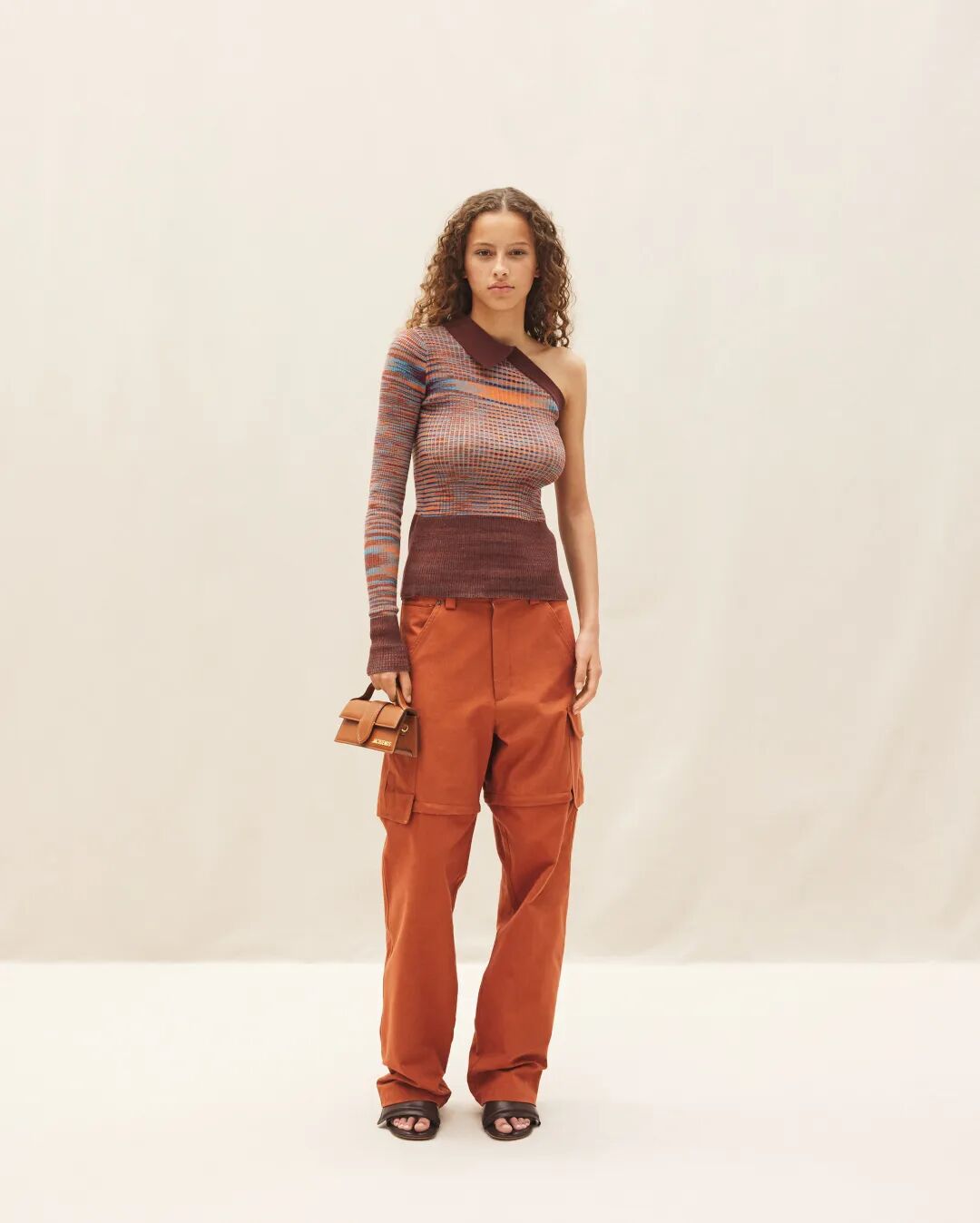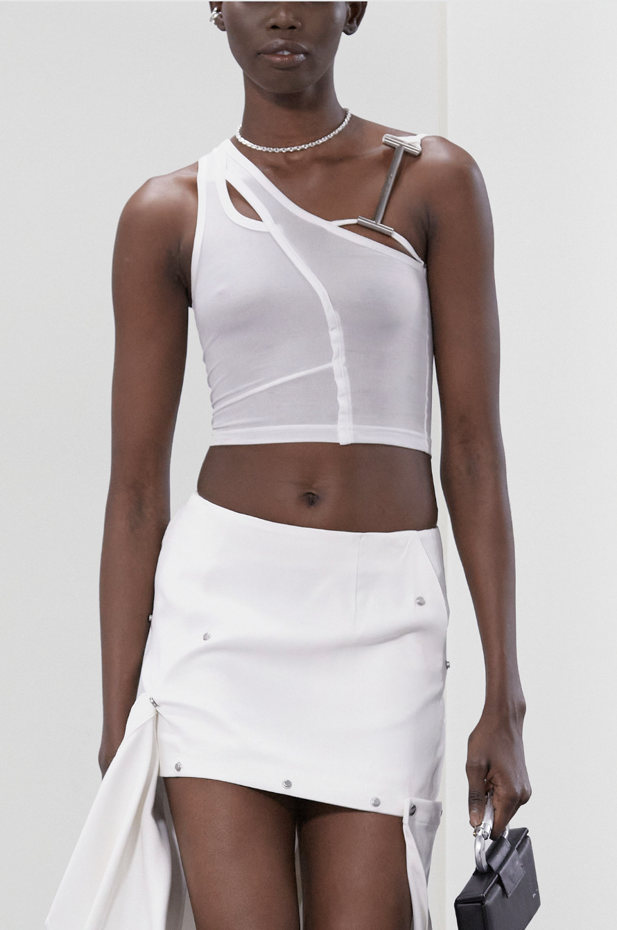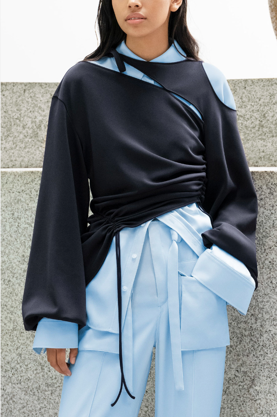 通过多种形式的变换,不对称的结构让造型更加多样化,强调个性的同时还增添了服装的趣味性。形成的镂空效果不仅注入了空气感,还适合叠搭!
