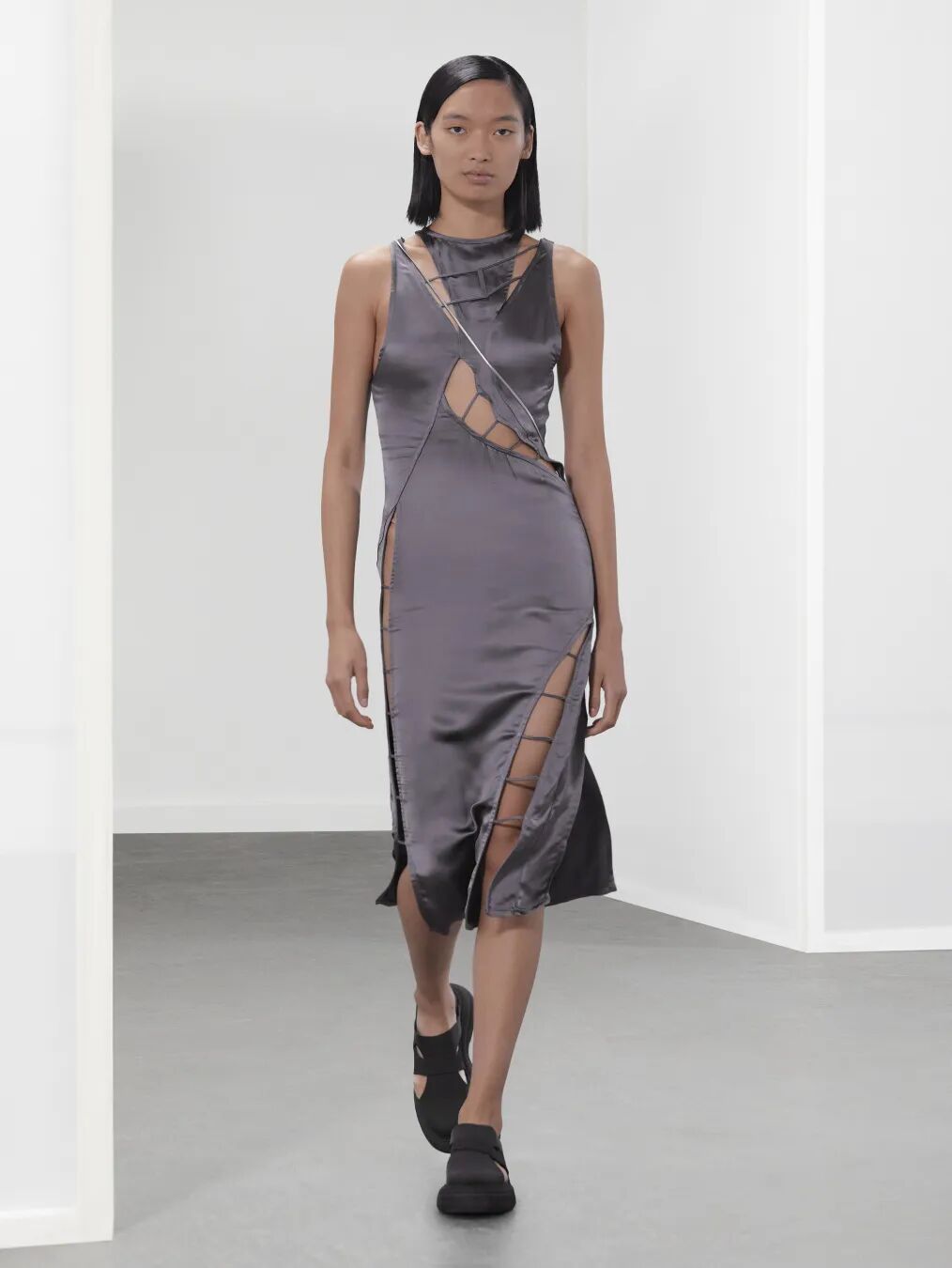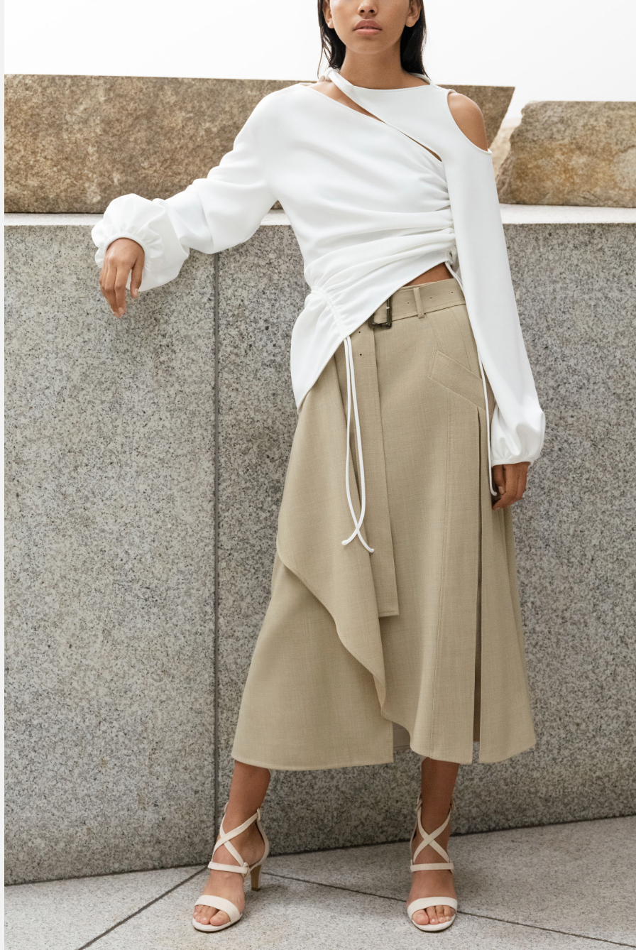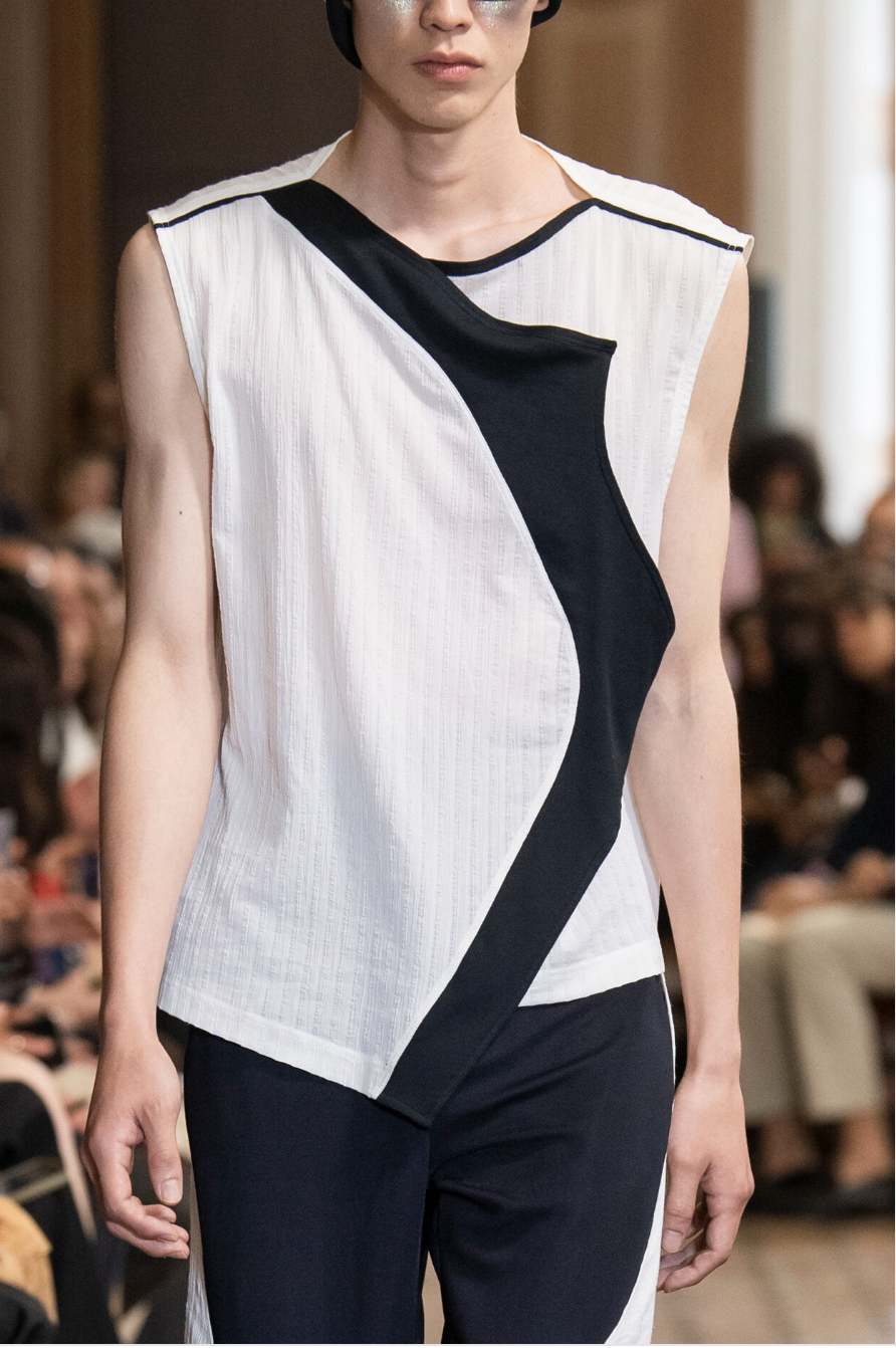 设计师经常通过解构和不规则剪裁等手法对服装的结构进行创作,打破人们对服装的刻板印象,同时为设计增加亮点。接下来一起盘点下近期有趣的非对称设计,感受服装的结构之美。