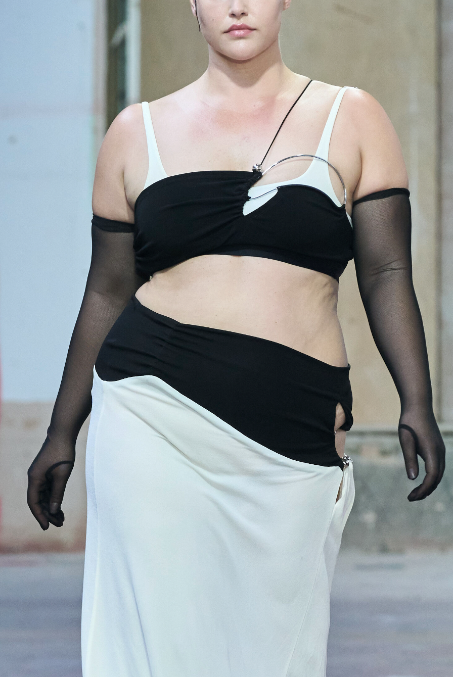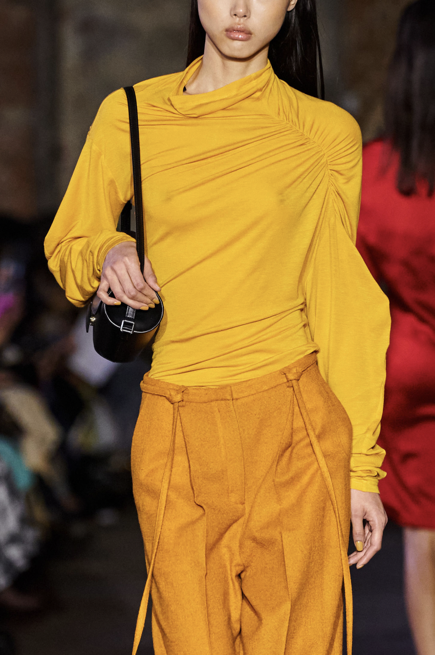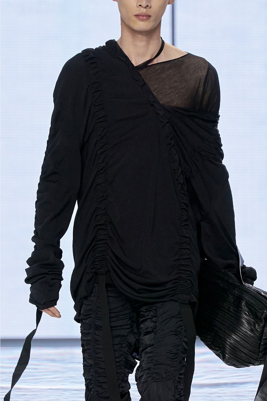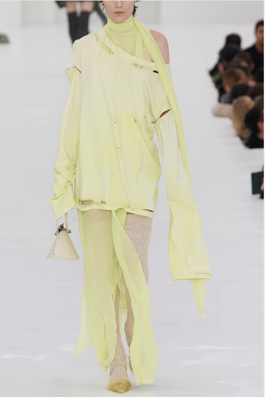设计师经常通过解构和不规则剪裁等手法对服装的结构进行创作,打破人们对服装的刻板印象,同时为设计增加亮点。接下来一起盘点下近期有趣的非对称设计,感受服装的结构之美。