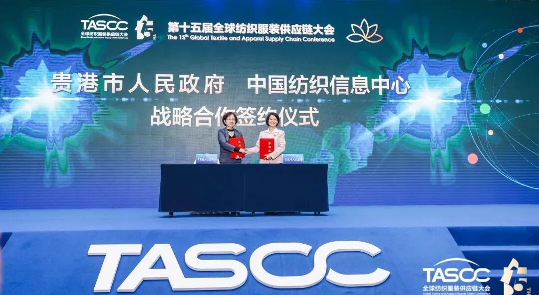 广西壮族自治区党委常委、自治区副主席许永锞在大会上致辞。他指出,纺织服装产业是传统产业,也是时尚产业,一头连着民生,一头连着发展。广西历来高度重视纺织服装产业发展。当前广西正在深入学习贯彻党的二十大精神,认真学习贯彻习近平总书记“五个更大”重要要求,加快建设新时代壮美广西,着力推动纺织服装产业转型升级和产业集群化发展。他还表示,希望行业借助本次大会的契机,牢牢把握RCEP落地实施等重大机遇,以广西为发展战略支点,进一步推进对外开放,以开放促合作;进一步搭建专业平台,以平台谋共赢合作;进一步深化产业合作,以合作促发展。贵港市委书记何录春在大会上致欢迎词。他表示,近年来贵港市认真贯彻落实中央和自治区决策部署,坚持把工业作为赶超跨越的强大引擎,深入实施产业强市的主导战略,纵深推进工业振兴,按照“强龙头、补链条、聚集群”的思路,大力培育发展纺织服装千亿元产业集群。他还指出,贵港将以本次大会为契机,聚焦短板弱项、聚焦行业前沿、聚焦做大做强,锲而不舍兴产业、不遗余力优环境、想方设法搭平台,努力打造全国一流、国际知名的全产业链纺织服装新一极,奋力实现“办好一次大会,提升一个产业”的目标。“贵港平南纺织服装产业的快速发展,为广西抢抓RCEP机遇、加速构建区域产业链供应链注入了新动能与新活力。”中国纺织工业联合会生产力促进部主任、中国纺织信息中心主任乔艳津在会上致辞中指出,广西正逐渐成为国内国际双循环的重要节点枢纽和新时代西部大开发新的增长极。RCEP的高效实施为产业扩大贸易规模、优化资源配置、强化供应链、提升价值链提供了良机。RCEP语境之下本次大会的举办,将为全球纺织产业构筑互利共赢的供应链合作体系,共享中国经济发展红利营造契机。今年,《广西高质量实施RCEP行动方案(2022—2025年)》发布并提出了明确目标,在高质量实施RCEP工作上交出了亮眼的成绩单,为区域经济融合发展注入了磅礴正能量。贵港作为“中国-东盟自由贸易区”物流通道的“桥头堡”、“珠江-西江经济带”两核的连接点以及中国纺织服装行业产业链“整建制”西移的主阵地,产业发展氛围浓厚,营商环境优良,吸引了一大批企业到贵港投资建厂、发展项目。围绕振兴地方经济、促进行业发展、深化产业融合、表彰行业荣誉,会上举行了26个重大项目合作(总投资额166亿元)签约仪式、“中国(贵港)纺织服装时尚新区意向合作框架协议签约仪式”、“共建中国纺织信息中心纺织服装供应链研究院战略合作签约仪式”、“润智收资源化利用基地项目合作框架协议签约仪式”、“推进贵港市纺织服装产业高质量发展战略合作协议签约仪式”、“中纺学标委会纺织服装供应链管理专家组专家证书颁发仪式”、“第十五届全球纺织服装供应链大会贡献奖颁奖仪式”等多项仪式活动。