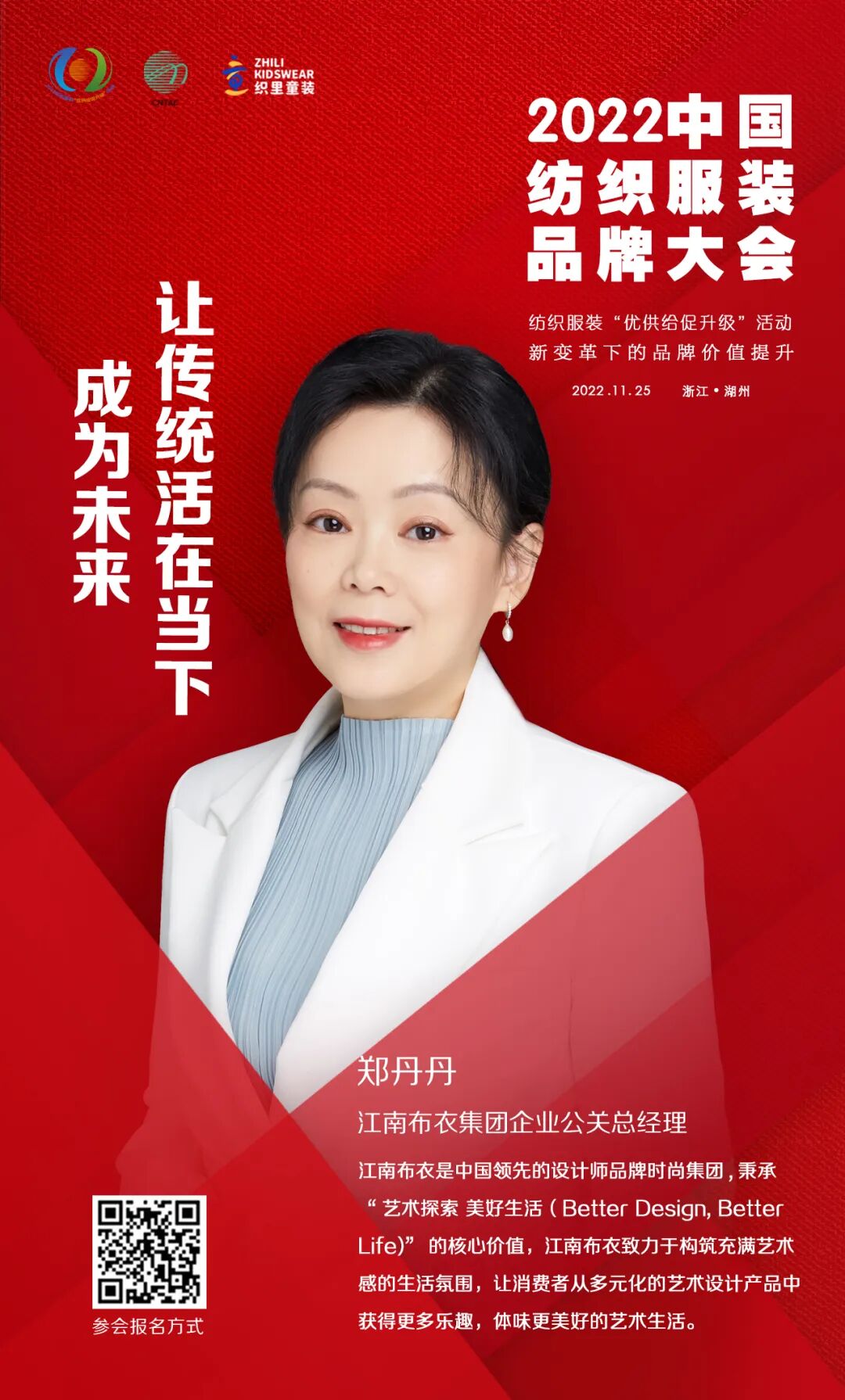 随着中国纺织服装品牌价值升级的大门徐徐打开,这座美丽的江南古城将精英云集,一场思想盛宴即将呈现。