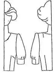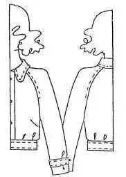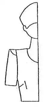 此图款式是一种下端宽松并由于袖口不分开,衣袖更显简洁、利索。制作时要注意分割的位置和放松量的大小。