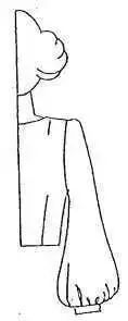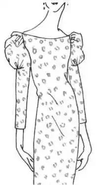 此图款式是一种外形与喇叭形短袖相似,为了使袖口缩褶后有膨大效果,要在袖口位加出约为袖中间张开量二分之一份量。