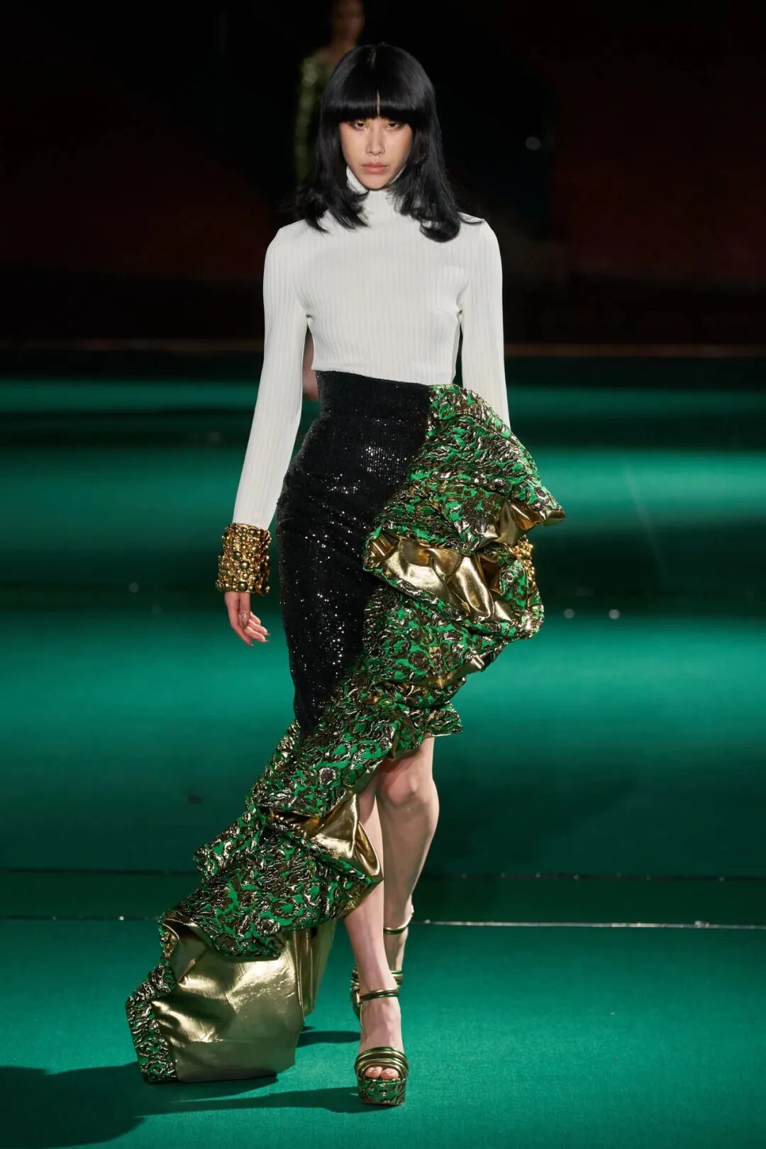 除了时尚款式,黑色高领毛衣无可争议的优雅,一个伟大的时尚经典,继续存在。本季,还可以选择天鹅绒和镶嵌应用,搭配大而重要的裙子。