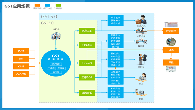 过去,IE作为一门专业的综合学科,对企业的发展起到了巨大的推动作用,但是由于过于专业,服装行业的普通员工很难在短时间掌握IE的专业知识和技能,加上专业院校毕业的人员有限,从而导致很多服装企业想推动IE的全面应用,而受到人才的制约,无法有效地推行。GST5.0的发布,在很大程度上可以缓解这些问题,代表了全员IE时代的到来。GST5.0将各种IE专业知识和应用手法,充分融入到系统中,通过提供各种简单易用的软件工具和手机APP,将系统用户从专业的IE工程师,扩展到了全体管理者和一线员工,大大降低了企业对专业IE工程师的依赖,让普通人也可以做好专业IE才能做好的工作,让全员IE成为现实。
