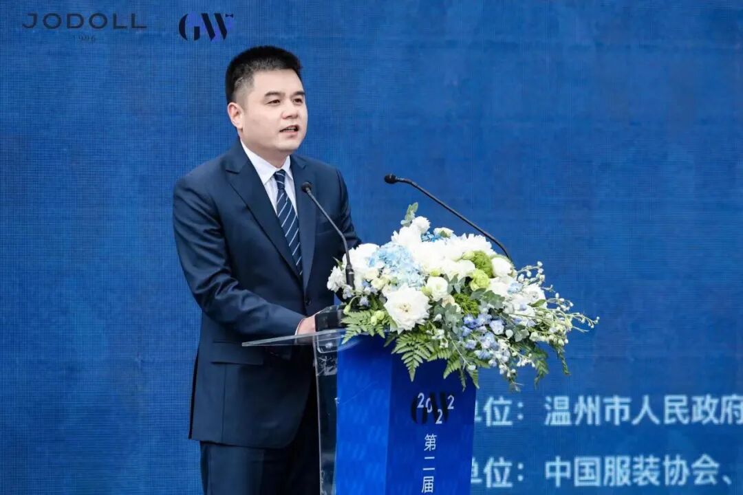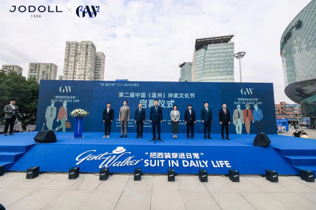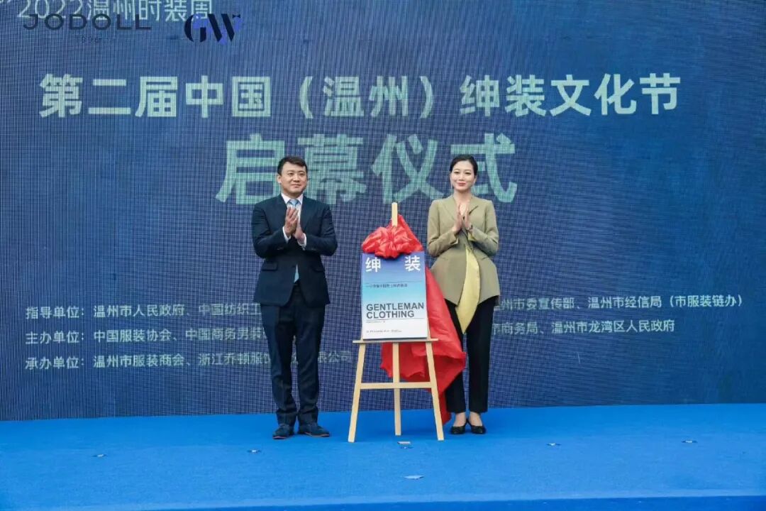 2022年11月5日,第二届中国(温州)绅装文化节在温州启幕,国际纺织制造商联合会主席、中国纺织工业联合会会长孙瑞哲(线上),中国纺织规划研究会会长、浙江省服装协会会长冯德虎,中国服装协会常务副会长、中国服装科创研究院院长杨金纯,中国服装协会副会长兼秘书长焦培;温州市委副书记、市长张振丰,温州市委常委、宣传部长、服装产业链链长施艾珠,温州市人民政府副市长王振勇,温州市经济和信息化局党委书记、局长、温州市民营经济健康发展促进局局长张志东,温州市商务局局长彭魏滨,温州市市委宣传部副部长、市新闻出版局局长梅阳,龙湾区委副书记、区长,温州高新区党工委副书记夏禹桨,龙湾区人民政府副区长董建树,温州市服装商会会长、东盟集团董事长池慧杰,中国商务男装研究中心执行院长、浙江乔顿服饰股份有限公司董事长沈应琴出席启幕仪式。