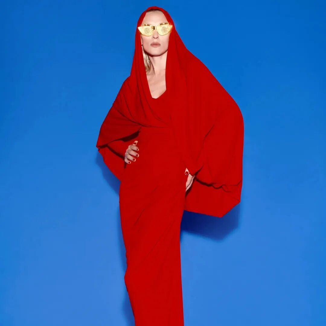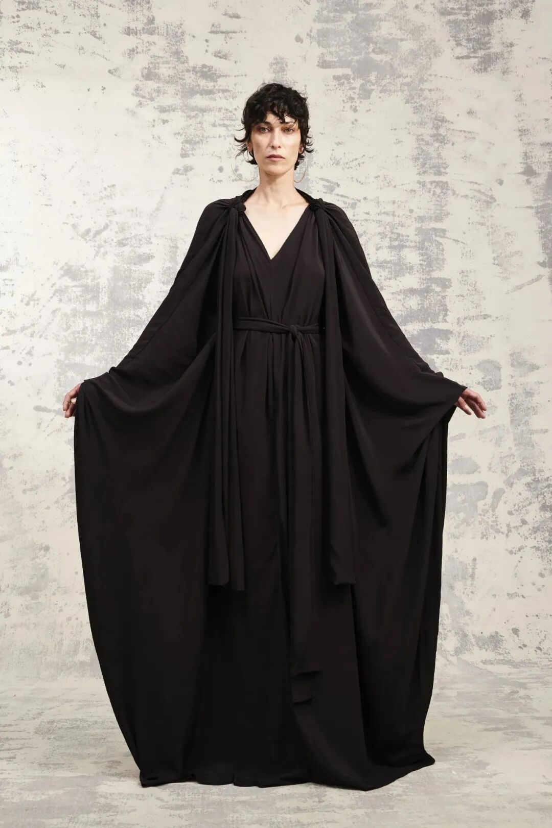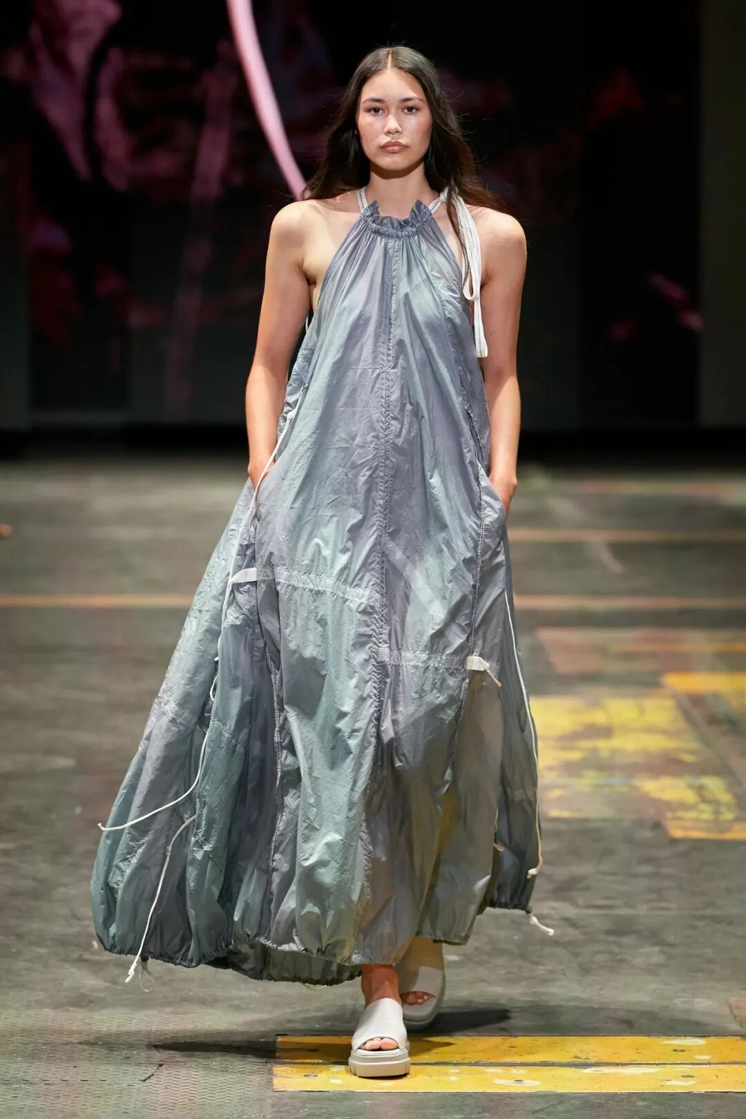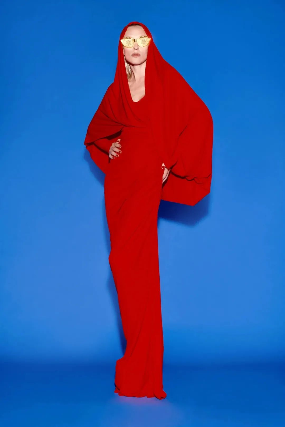 设计师们使用液态平纹针织面料和透明面料重新设计了悬垂效果。