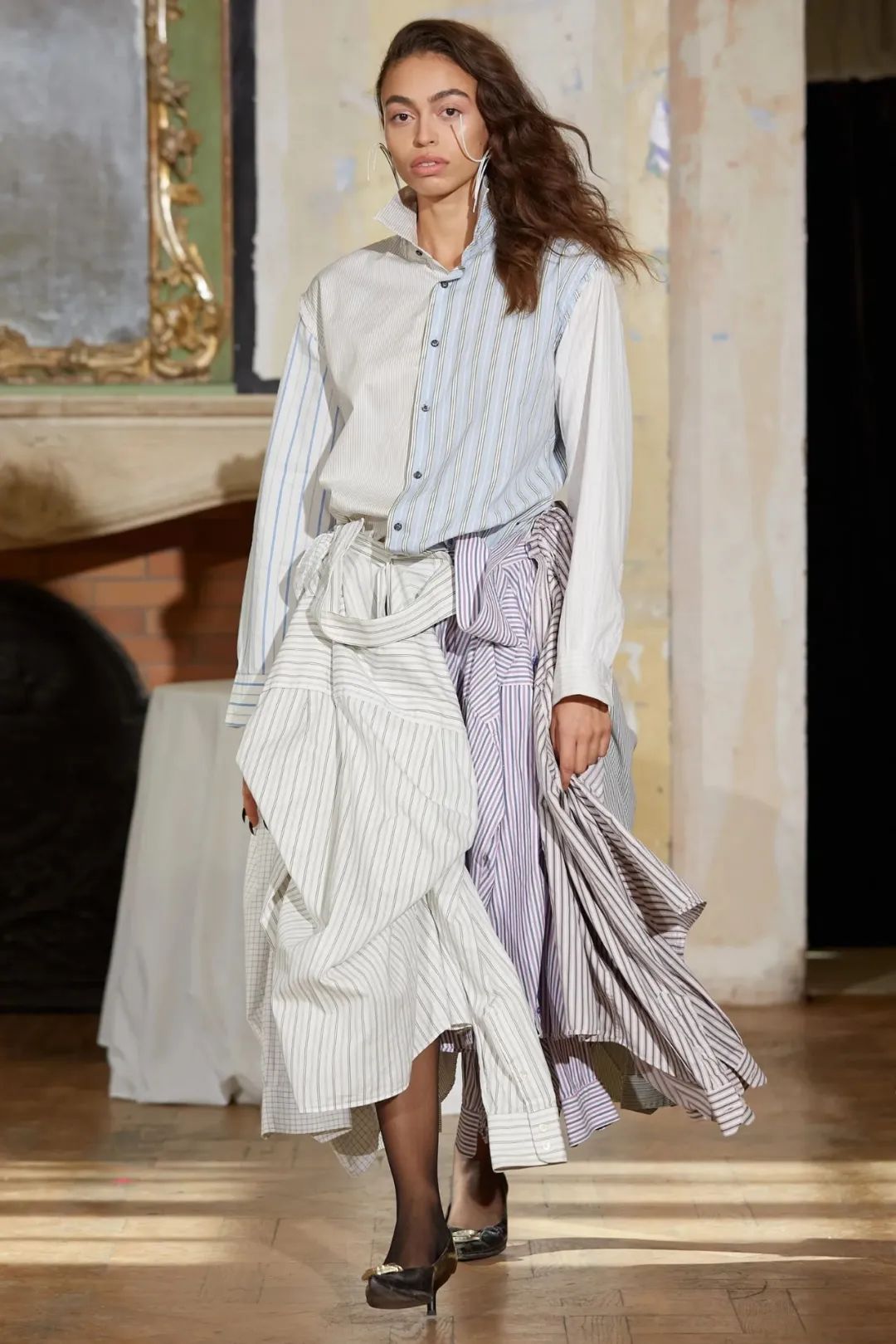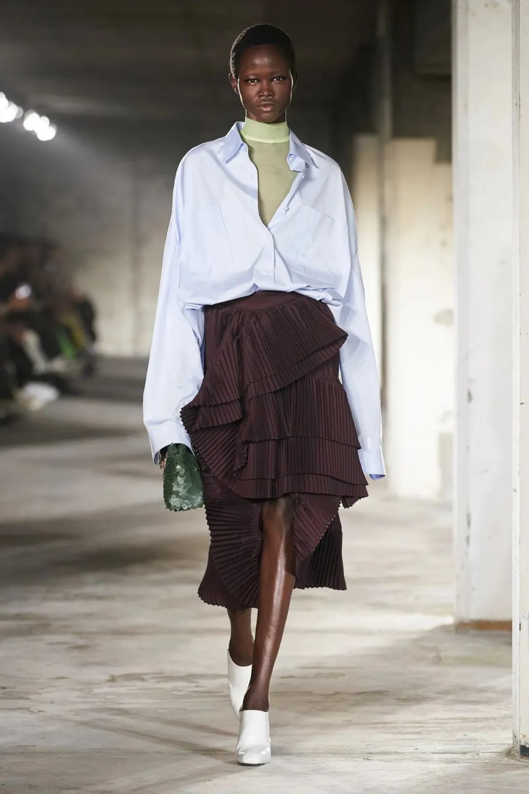 本季很多设计师选择了大气的不对称设计,不对称剪裁的半裙和夹克,优雅的反映了不确定的时代。