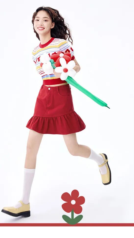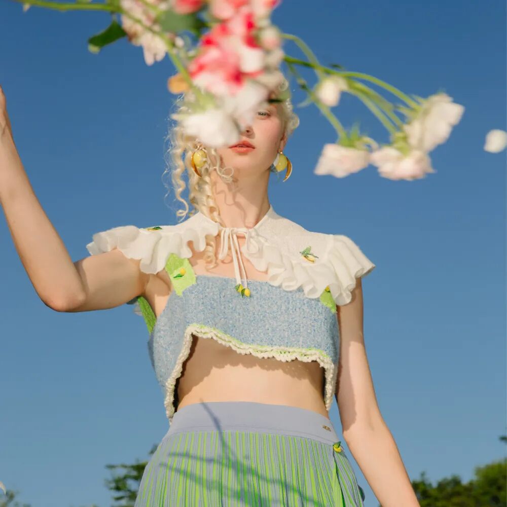 多巴胺甜妹的造型充分展示了俏皮的少女系风格特点。清新活力的色彩碰撞传递快乐情绪,充满肌理感的面料以及点睛的装饰感柔美细节无一不在释放俏皮甜美的小确幸。