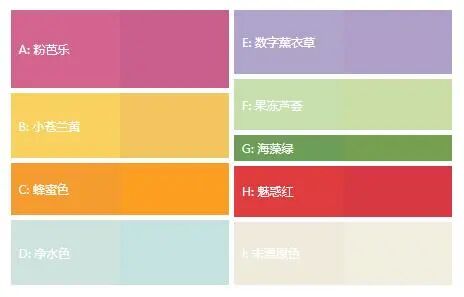 应用建议:作为明亮多彩色的组合,该色盘将快速吸引年轻消费人群的视线。可以通过大面积的色彩碰撞,打造简单、明快、而又不失甜美的装扮。