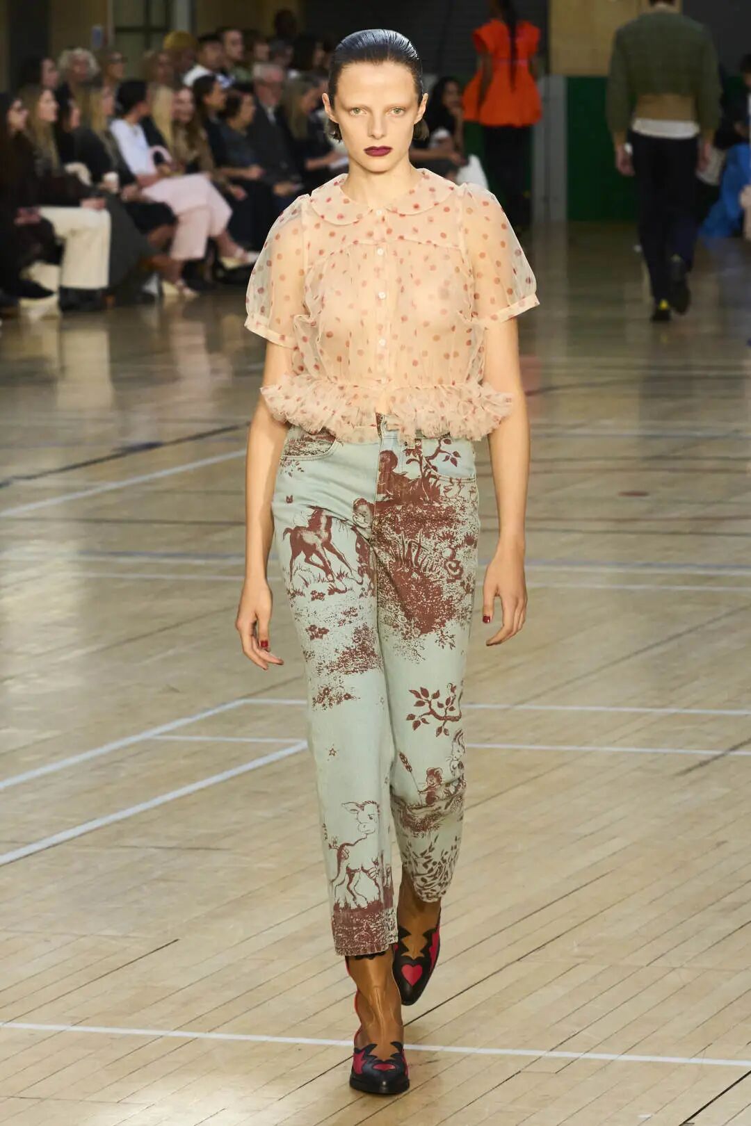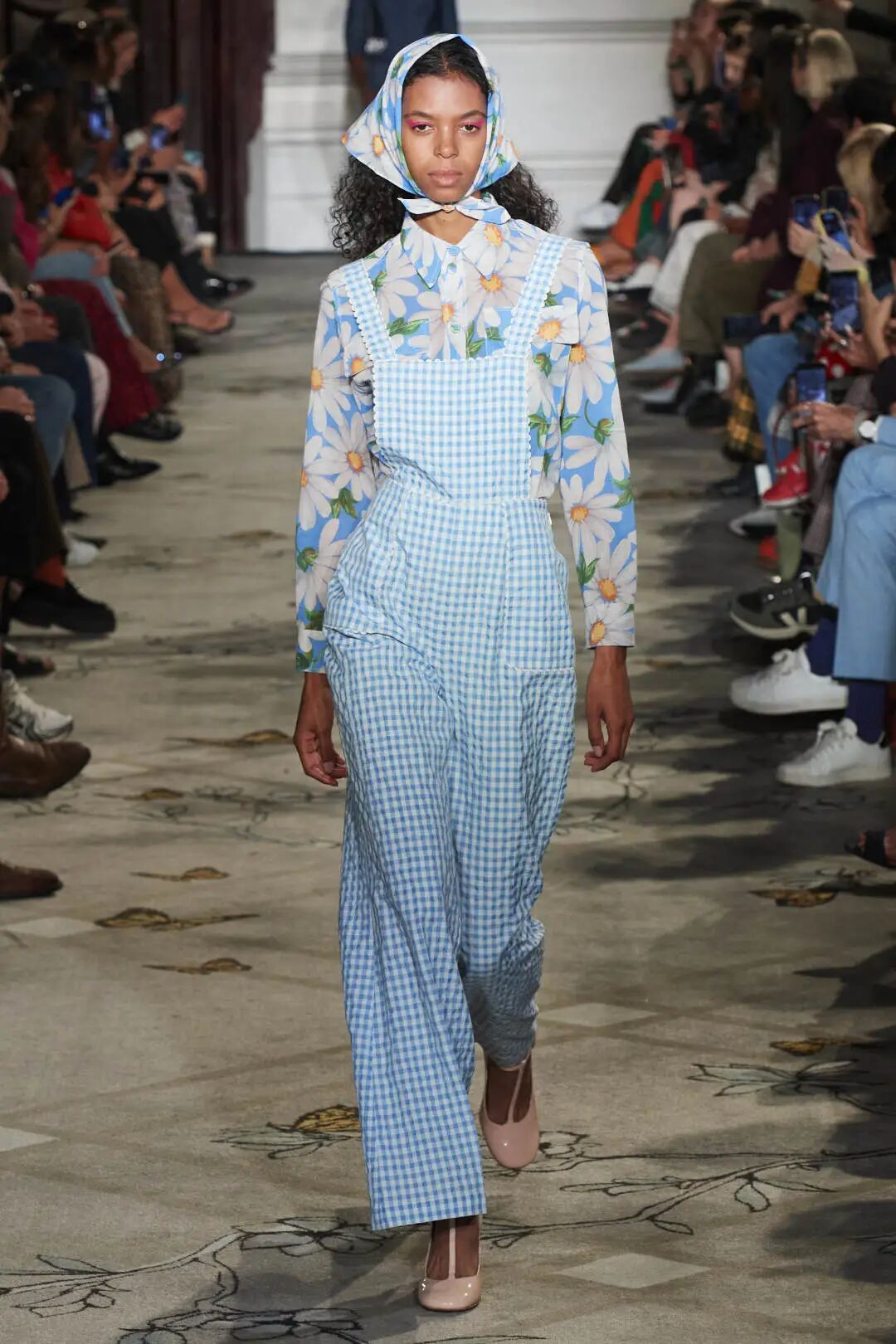 约依印花的丰富细节为迷你连衣裙和丹宁等商业单品增添怀旧与浪漫感,打造出极具英伦风的新旧碰撞造型。图:Molly Goddard