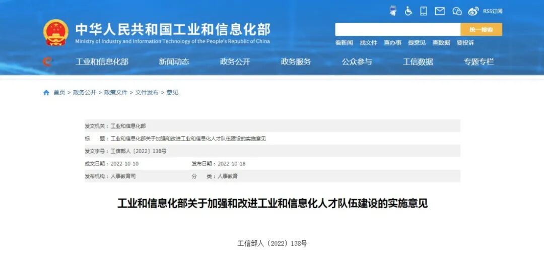 点击蓝字关注我们工信部10月18日印发《关于加强和改进工业和信息化人才队伍建设的...