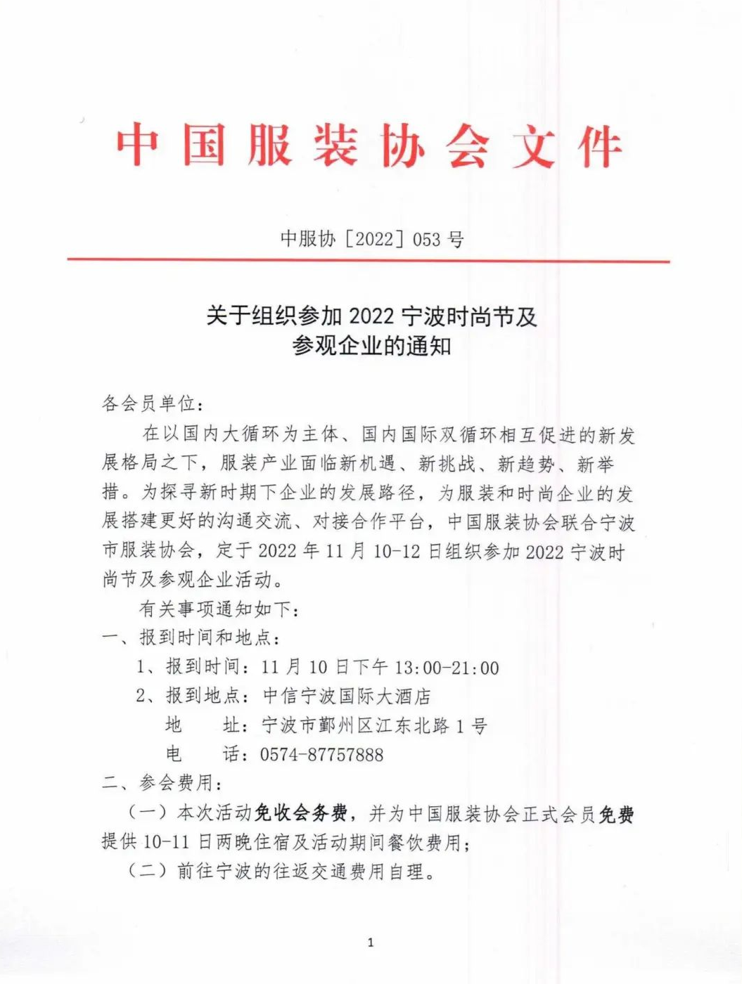 通知公告 | 关于组织参加2022宁波时尚节及参观企业的通知