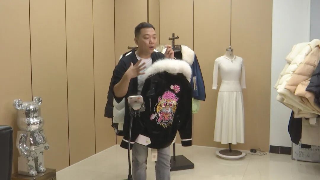 在辛集市工业设计中心电商直播基地,主播徐士雄正给网友介绍由我市制衣企业制作的当下最流行的派克服。