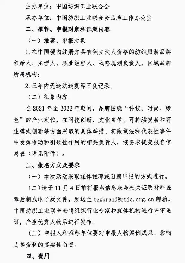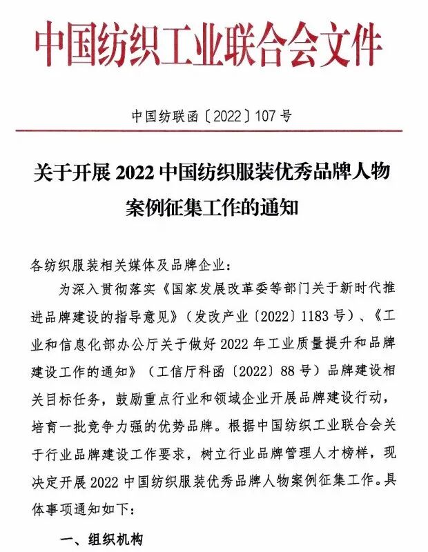 通知公告 | 2022中国纺织服装优秀品牌人物案例征集工作正式开启