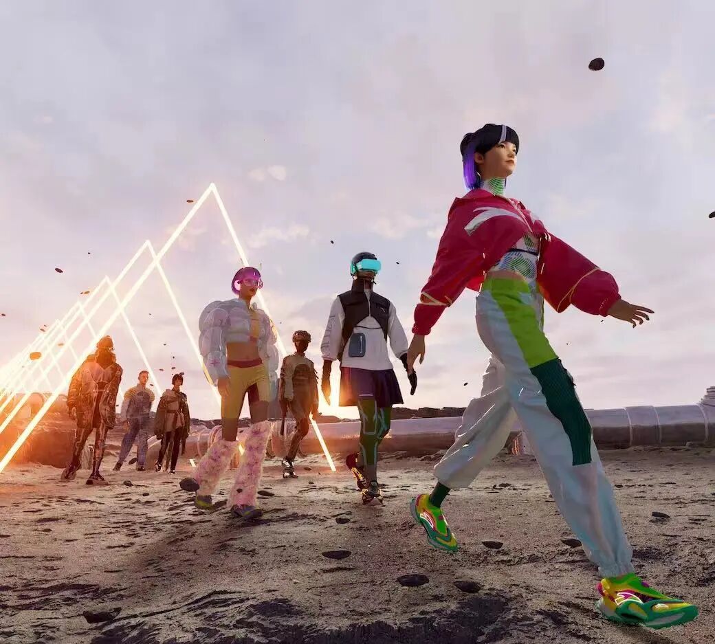 而上海时装周、新天地和中国顶级设计师一起,将手稿数字落地成为数字时装,以 NFT 的形式发布,被消费者收藏并“试穿”,“浅浅”初试元宇宙链路;安踏在中国国际时装周发布从数字人到数字时装,数字场景的完整数字作品,也是中国品牌“浅尝”元宇宙的代表;甚至包括李宁此前通过买下无聊猿编号#4102 的 NFT,获得了无聊猿编号 4102 的版权以及二次创作权,进而成立“无聊猿俱乐部中国李宁分部”,并计划推出该系列服装,也为中国消费者探索元宇宙提供了“入门”体验……
