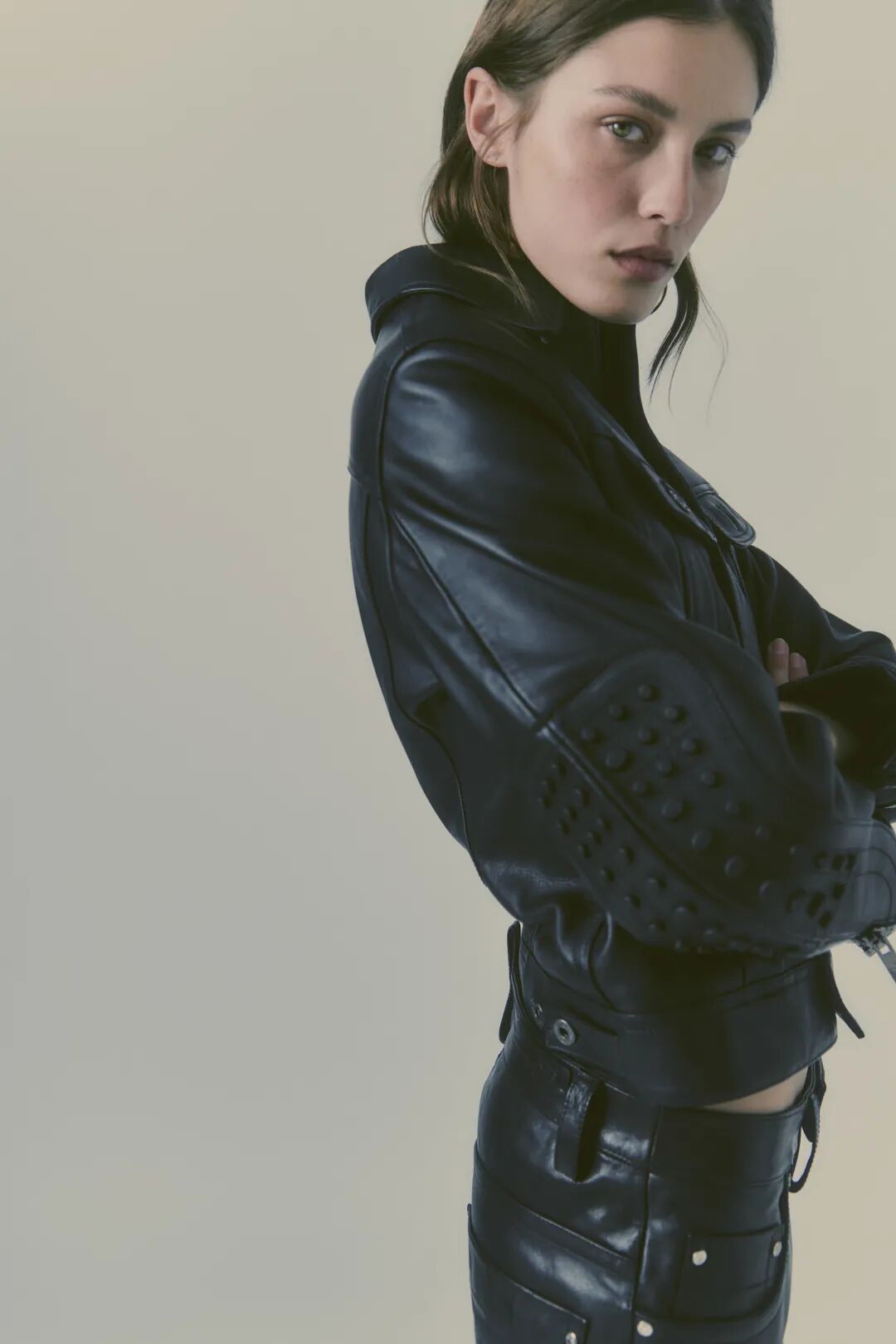 机车夹克自带#90年代和#Y2K千禧风的怀旧感,#ModernGoth摩登哥特和#RacerRevival赛车复兴等新兴趋势拉动了机车夹克的人气。虽然机车夹克在零售市场略有减少 (美国年同比-2%,英国年同比-4%),但更为精致的机车夹克在度假季时装秀上加速发展,可以看到丰富的表面细节,如纹理、装饰、印花皮革等。