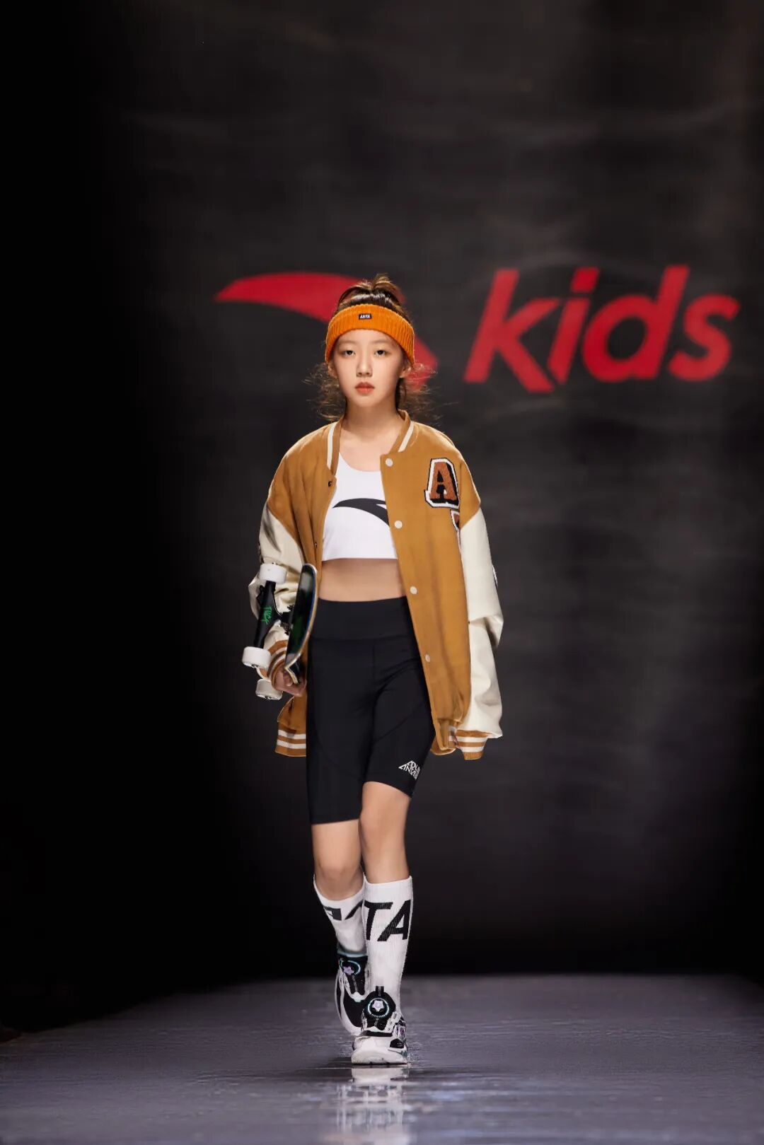 安踏儿童在这场由抖音搭台的重磅活动中作为闭幕品牌发布,从儿童运动场景出发结合现场炫酷的主题风格,进行了品牌当季新款的发布,包括篮球、骑行、跑步等专业运动系列鞋服。同时还有全新的城市新兴运动系列:滑板,飞盘,腰旗橄榄球、平衡车等系列。