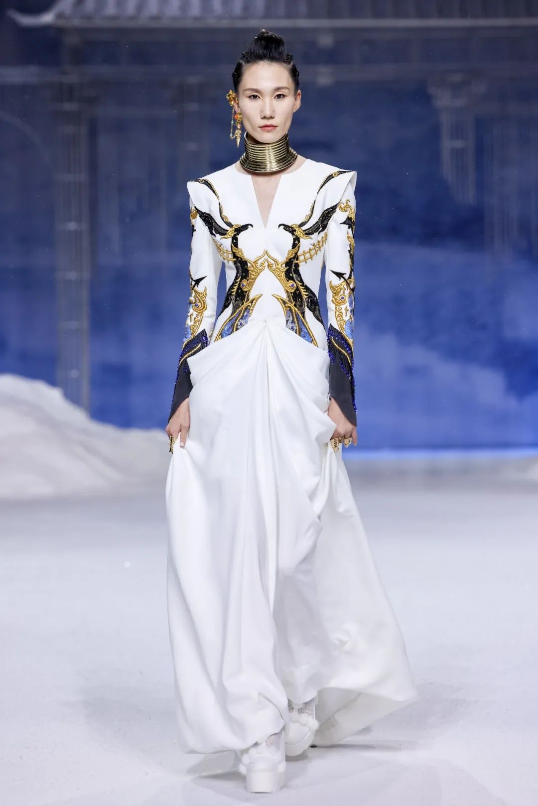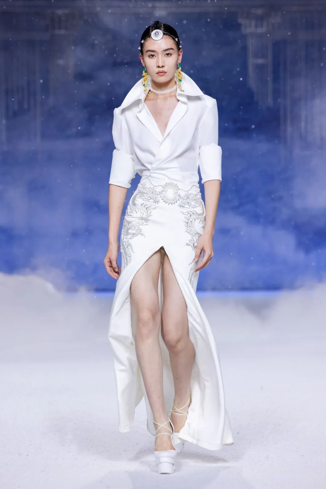 本次发布会一如既往受到驻华大使、行业专家、各界知名人士、多栖明星、品牌挚友的关注与支持,青年演员林柏叡身着熊英设计的最新款服饰,一身白色国风造型化身“天宫神龙”,惊艳秀场。