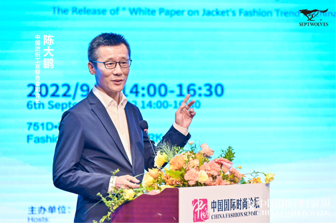 9月6日下午中国国际时尚论坛——时尚男装的设计突围暨《中国时尚茄克流行趋势白皮书》发布会在751D·PARK时尚回廊举办。作为中国国际时装周23SS系列的重要活动,本场活动将关注点对焦男装茄克,邀请各维度嘉宾,深入探讨设计如何引领时尚茄克的设计突围。疫情之下,除了到达现场,观众也可通过直播参与互动,在中国国际时装周期间,代表时尚头脑风暴的论坛板块,掀起一场聚焦设计启迪的脑洞嘉年华。这场高峰论坛由中国服装设计师协会与七匹狼男装联合主办,服装设计师杂志社承办。邀请行业内外重量级嘉宾齐聚于此,一改论坛的沉闷气氛,通过一场主题演讲加流行趋势发布的方式,在轻松的氛围中共商新形势下中国男装产业发展大计,为男装产业和男装设计的发展做出新的研判。中国纺织工业联合会副会长陈大鹏,福建七匹狼实业股份有限公司董事长周少雄、副总裁余如、品牌管理中心负责人耿大为,中国服装设计师协会专职副主席朱少芳,国家信息中心经济预测部宏观经济研究室主任闫敏等嘉宾出席论坛。论坛开始前,中国纺织工业联合会副会长陈大鹏在致辞中指出,当下男装市场的时尚化、细分化、多元化的特征越发明显,但市场供给侧并没有完全跟上消费变革需求。如何深入洞察消费变革,分析把握市场流行趋势的发展方向是男装企业、品牌及设计师需要深入思考的问题。七匹狼多年来一直深耕于男装领域,是中国最优秀的男装品牌代表之一。今天关于茄克设计的头脑风暴及《中国时尚茄克流行趋势白皮书》的发布,是共同探讨茄克产业发展面临的机遇和挑战,梳理新常态下茄克产业发展的新途,将为未来时尚男装的设计创新起到理念、逻辑或方法论上的导向作用。福建七匹狼实业股份有限公司董事长周少雄表示,随着新消费时代的机遇与疫情常态化的挑战相继而至,给中国时尚男装行业发展带来新的课题。作为中国领军的男装企业,七匹狼在聚焦茄克这个核心品类竞争力的同时,致力于传递狼性奋斗精神的中国时尚态度,为中国男装引领世界的时尚梦想贡献自己的一份力量。中国服装设计师协会作为中国时尚产业的引领者和推动者,肩负着培养中国时尚创意的原动力、提升中国时尚产业在全球的话语权的责任与使命。为了实现这一共同的目标,双方开启了深度战略合作之旅,联合推出了《中国时尚茄克流行趋势白皮书》及七匹狼·中国茄克时尚创意大奖赛,以“领头狼”的社会责任感为消费者创造出更多价值,在今后的发展路程当中戮力同心、共进共赢。