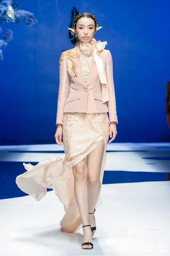 9月5日,上久楷·边惠中2023高级定制全新系列“无为”发布会登陆中国国际时装周。发布会取意庄子的“无为”之道,呈现了世界非物质文化遗产——宋锦在现代实用场景的诗意表达。时装设计师边惠中以自然为题,以宋锦为纸,以点线面为墨,结合西式立体剪裁技术以及异质拼接,绘制出一幅未经刻意雕琢却带有诗意与浪漫的时尚画面。企盼以有为之法入无为之境,自然而然地唤起大家对传统文化的共鸣,将东方美以全新的形式展现在观众面前。本场大秀延续了上久楷将非遗和时尚力量碰撞融合的风格,致敬“本然”的生命哲思,细节处尽显旖旎的自然风光。边惠中以写意的艺术设计手法将华夏山水之仙,鸟语花香之灵,日月光辉之昭呈现在服饰之上,结合新材质、新工艺、新拼接,依次从“意”“韵”“形”“质”“神”等角度探索自然与设计的奥秘,由表到本,由形到神,由意到韵逐步升华,从而展现出一场婉约仙逸的视觉盛宴。黑、咖等深色系为主色的“未知”系列,用面的形式表现“花”的千变万化,神妙万千,表达在茫茫宇宙中迸发的思绪;如粉色调为主色的“浮现”系列,采用传统非遗宋锦提花细节辅以异质拼接的剪裁工艺,静雅间意蕴飘扬,以不同形态呈现自然之态;米白色调为主色的“幻境”系列,表达在意识驱动下自然而然地发展,展现众生皆无为的东方美。在服饰的设计及制作工艺上,上久楷秉承将宋锦运用到当代的生活当中去的初心,将廓形宽版西装搭配柔美飘逸礼服,重工蕾丝上衣连接硬朗旗袍下摆,以多元的搭配与拼接设计诠释了“实穿的艺术品”的定位。在服装面料运用方面,宋锦与现代羊绒、羊毛等纱线通过图案的接合,形成了无缝拼接。“如何将宋锦传承与创新下去,是我们每一季设计的重点,也是一种使命。”边惠中说,本系列利用宋锦细腻与羊毛粗犷的特点,以特殊的织造技艺,制造出了时尚且耐用的新型提花面料。打破了传统宋锦的织造理念,展示宋锦现代化应用的多面性,体现的正是上久楷活态创新发展宋锦工艺的坚定决心,以及实现决心的恒心。