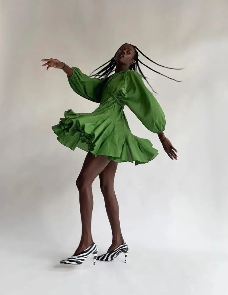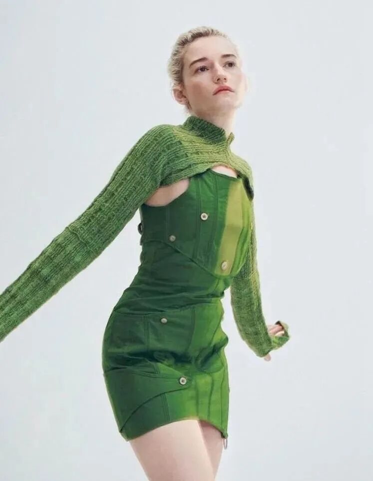 中色调绿色成为夏日吸睛色彩,年轻和时尚消费者依旧对醒目造型和提振情绪的趋势青睐有加。绿色调受到前卫市场和大众市场的青睐,将成为2023春夏十分适销的色彩,明亮中色调开始走红,这样的色彩让人想到大自然,也贴合了Z世代消费者偏爱的数字风格。