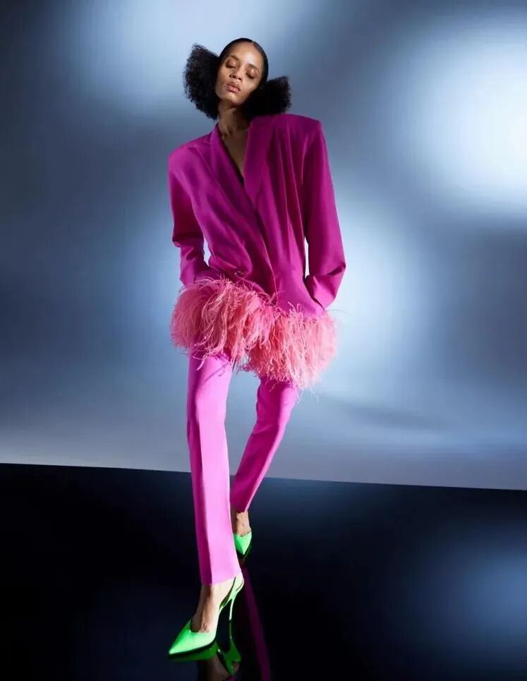 醒目的超亮粉作为跨季亮色,凭借其炫目和提振情绪的质感,迎合了多巴胺造型趋势,不断吸引着消费者的关注。