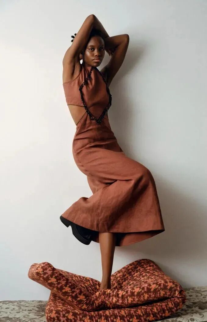 通过采用天然面料和田园风处理,彰显此天然感色调的有机质感。采购亚麻和GOTS认证棉等更为环保的材质。也可以运用高光泽#Satins缎面,打造光泽效果。设计优雅简洁的廓形,呼应不断升温的沙滩常服和内敛波西米亚趋势。亚麻连衣裙营造出夏日氛围,缎面单品和针织基础款则彰显了全年可穿的魅力。