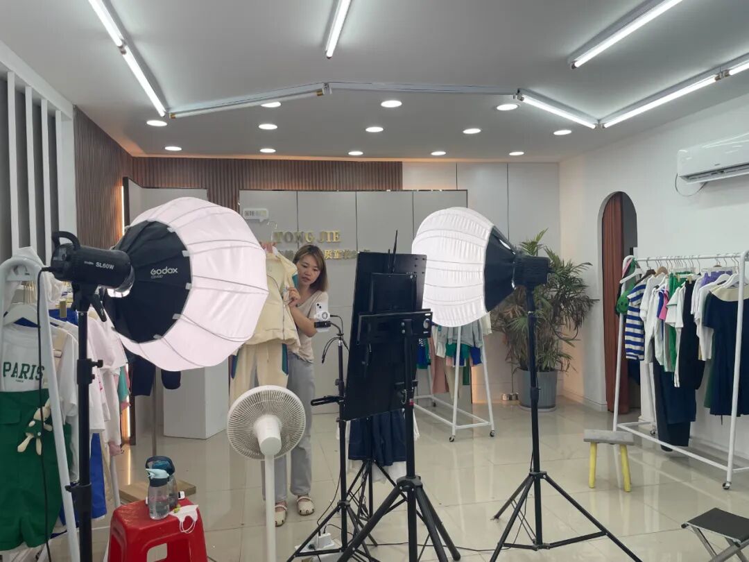 记者走访童装城时,几场直播正在同时进行,原有的厂房经过简单改建,早已成为了一个个直播间。据悉,在望江童装城像这样的网上直播间有近百个,带动数千人走向致富路。