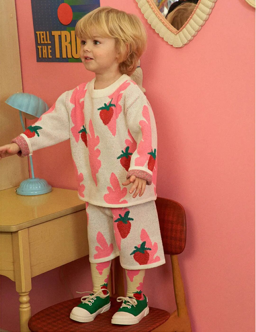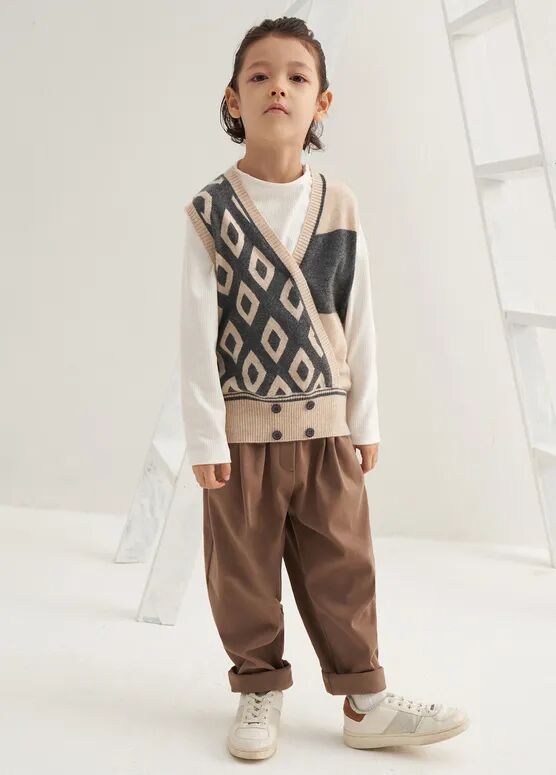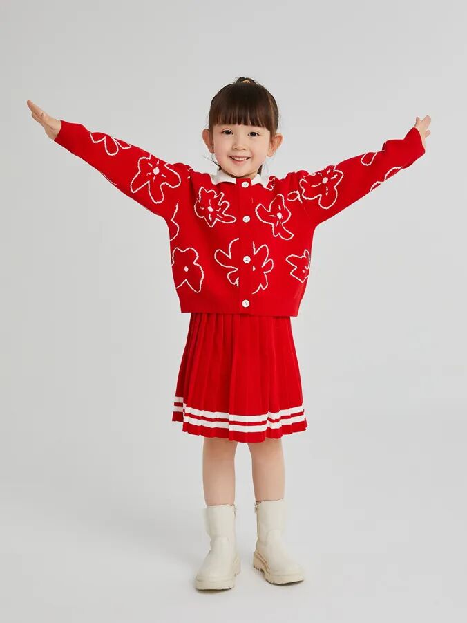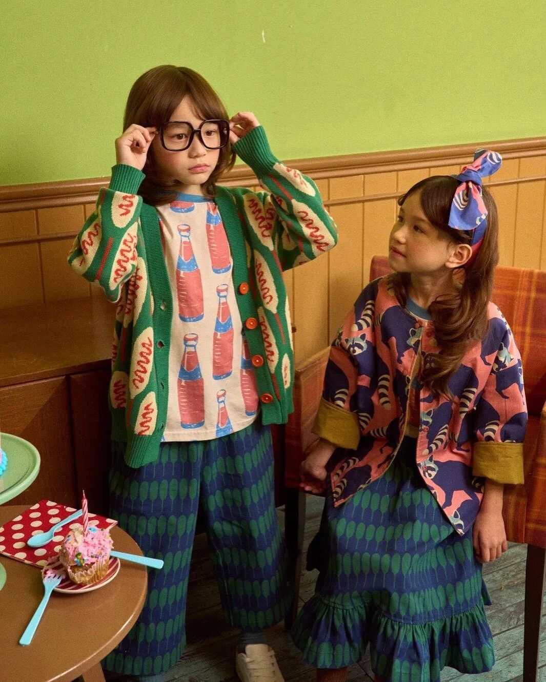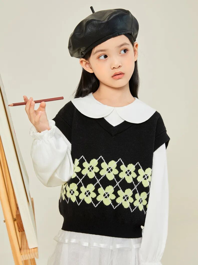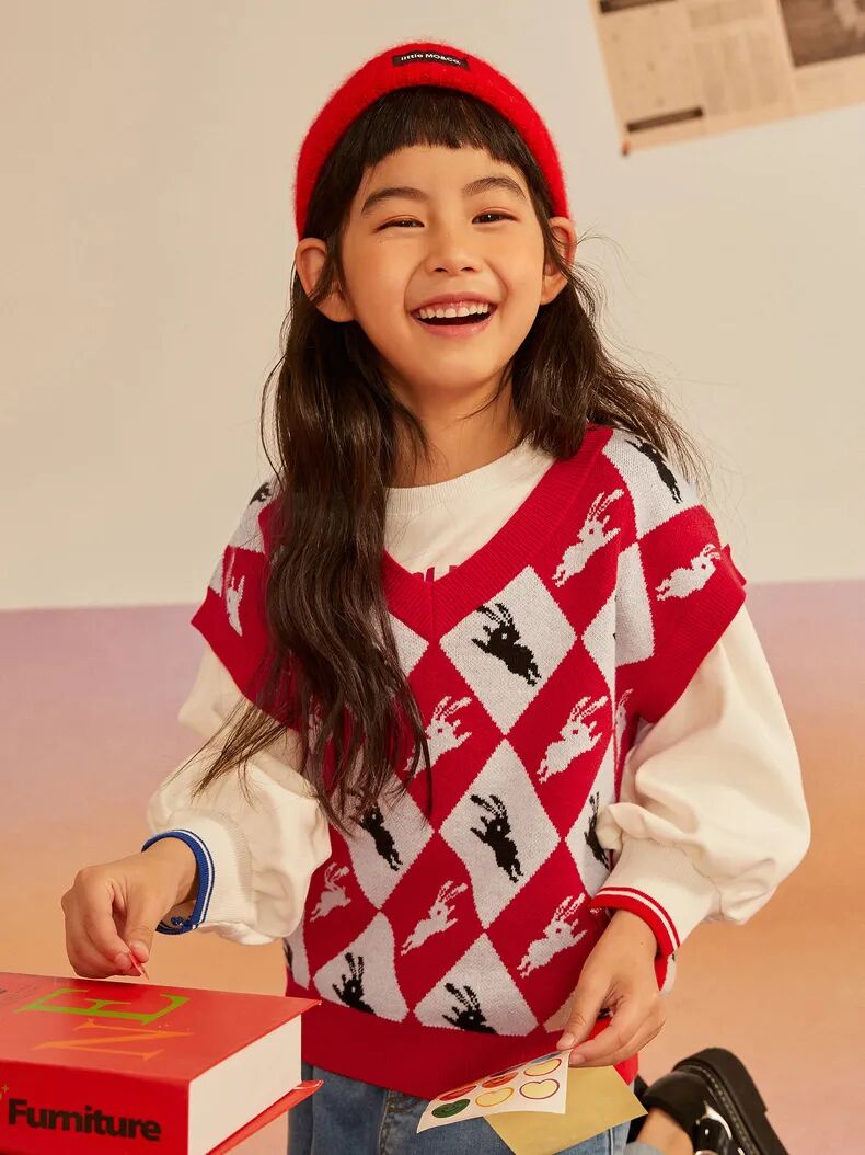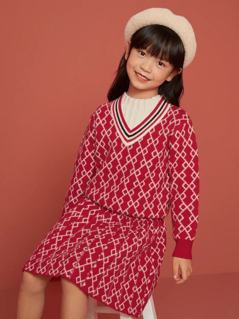 23/24秋冬,童装的针织单品整体呈现复古甜美的风格,收腰的裙装展现女童的精致甜美;提花套装呈现丰富的色彩图案;格纹背心经典百搭;针织披肩和斗篷不仅有较好的实穿性,也能增加舒适惬意的氛围感。
