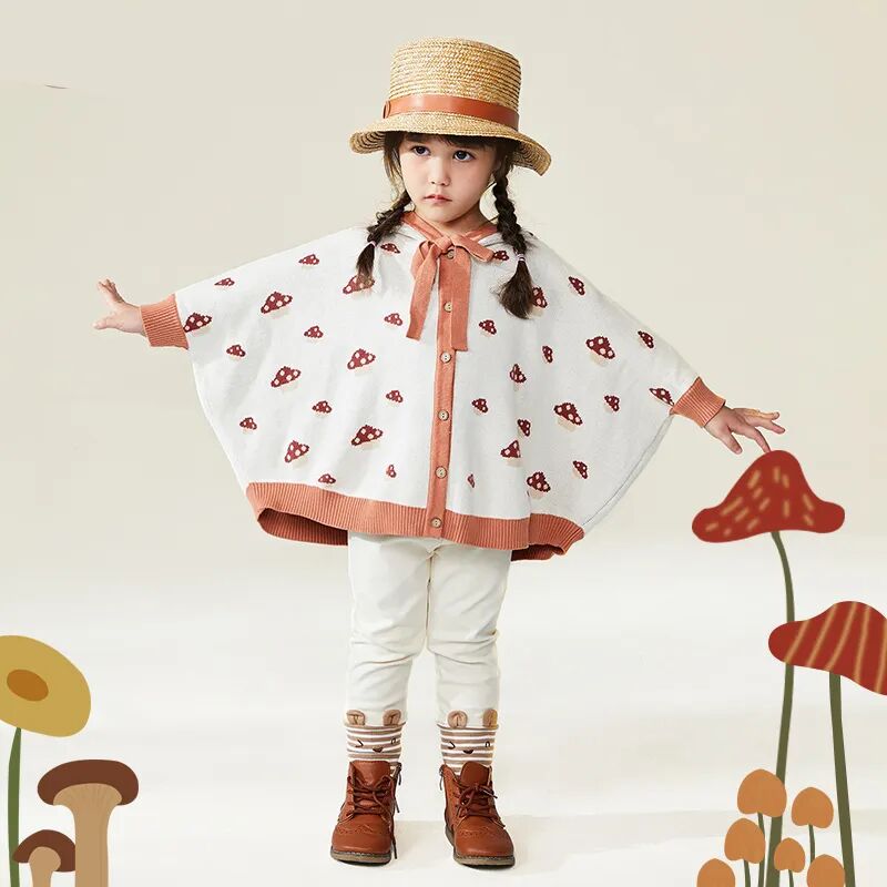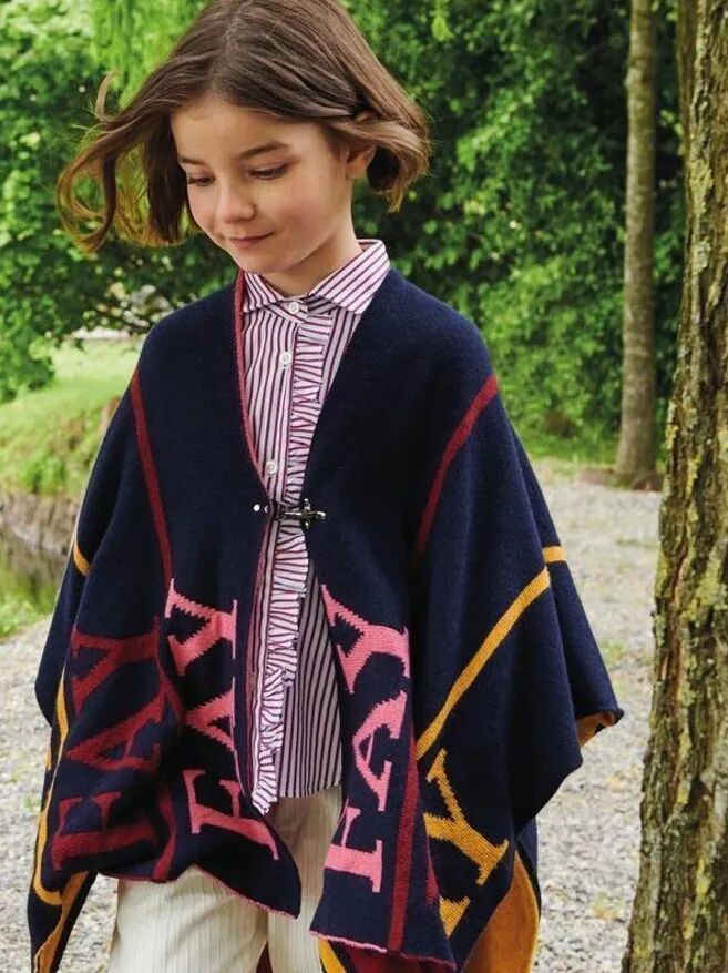 披肩和斗篷以经典简约的造型融入到童装的设计当中,灵活的穿脱方式提供便捷。针织的披肩与斗篷更具舒适性和悬垂感,为秋冬单品减少臃肿笨拙之感,边缘垂落的流苏让整体效果更加灵动飘逸。