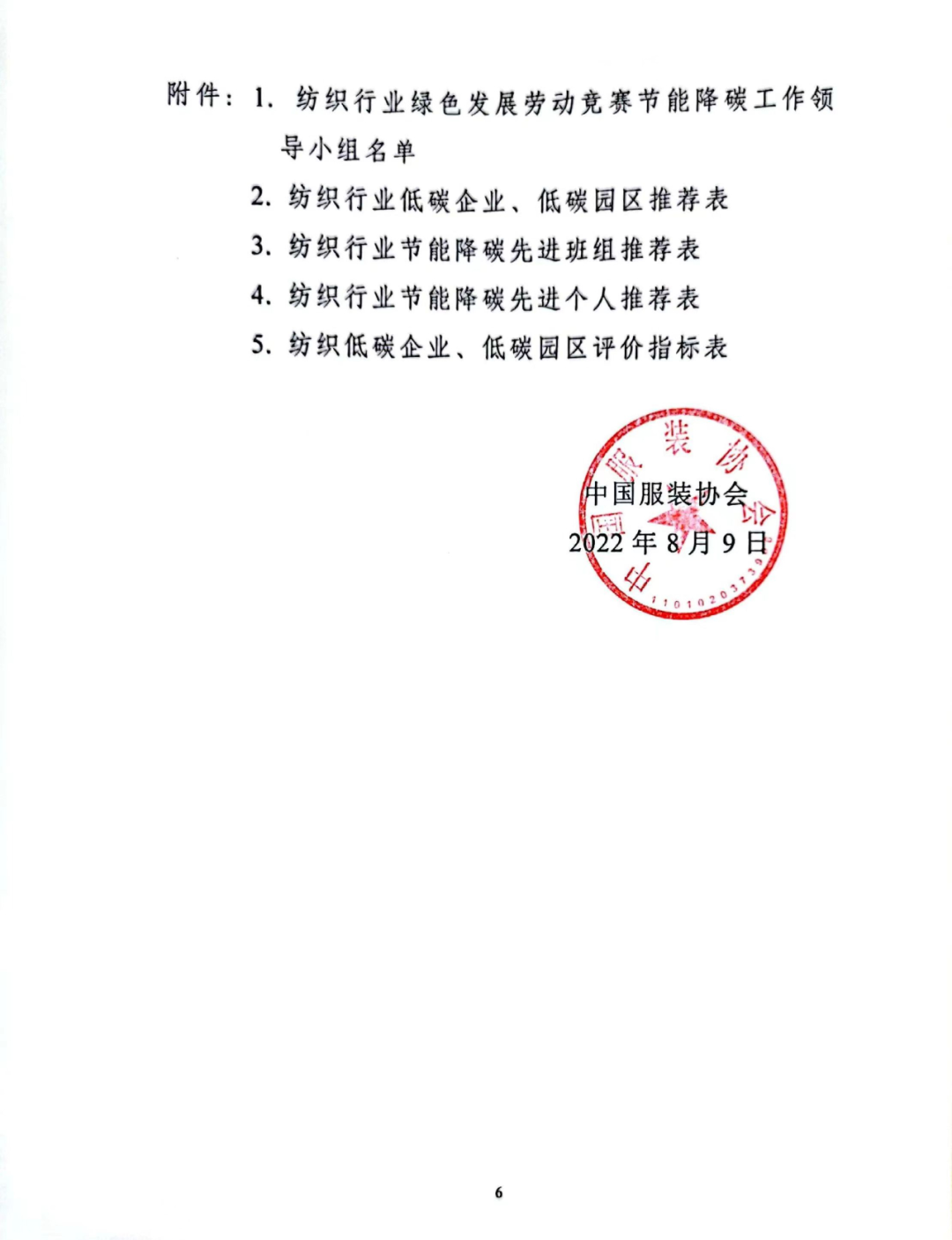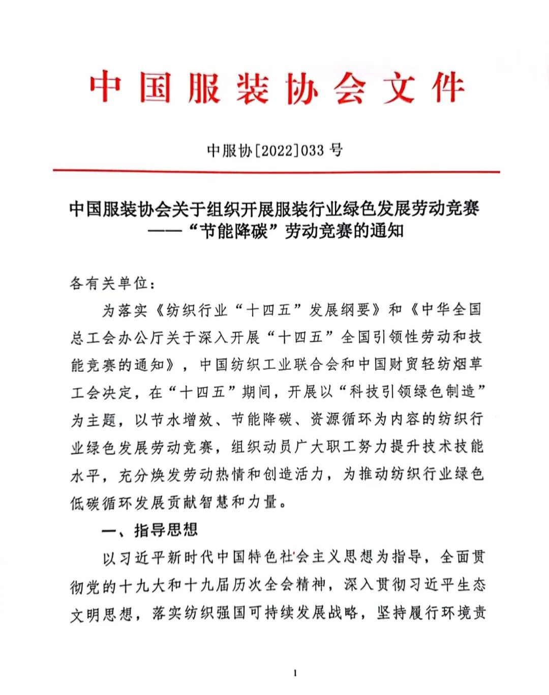 中国服装协会关于组织开展服装行业绿色发展劳动竞赛——“节能降碳”劳动竞赛的通知