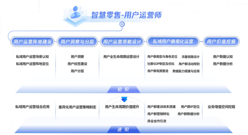 私域运营,核心在“用户”。为更好、高效地运维私域用户人群,用户运营师需要了解私域用户阵地搭建、运营、维护以及内容策划的方法,并通过用户标签、用户分层等手段洞察用户,以数据分析为指导,对用户进行全生命周期的精细化运营,激活品牌自有用户,实现转化、口碑分享及复购。