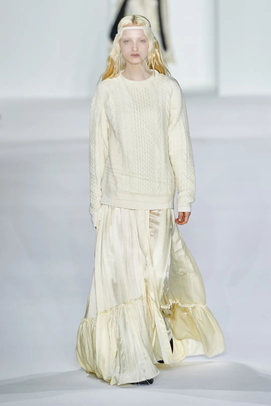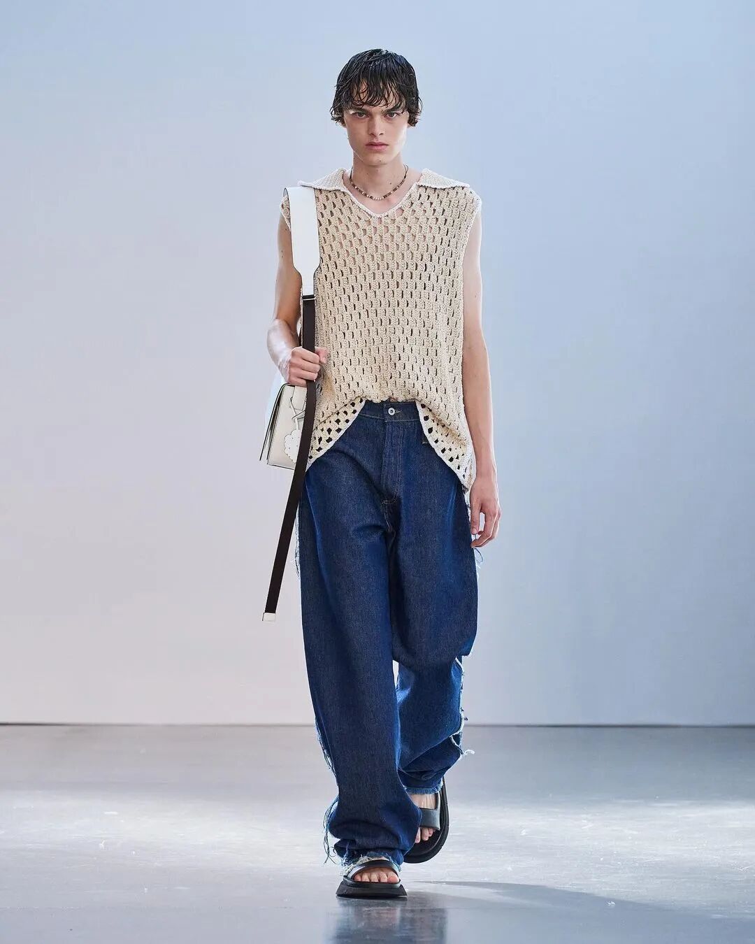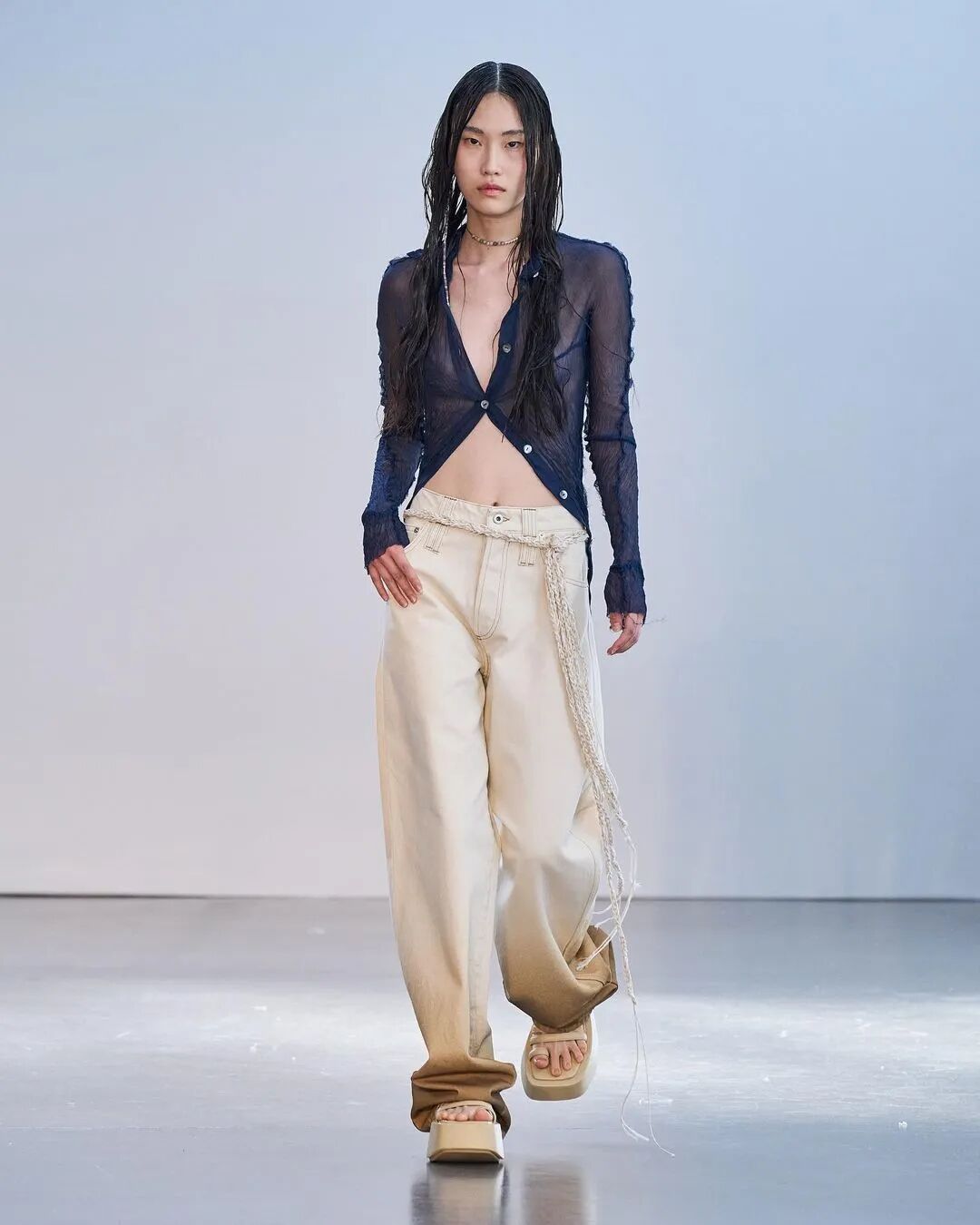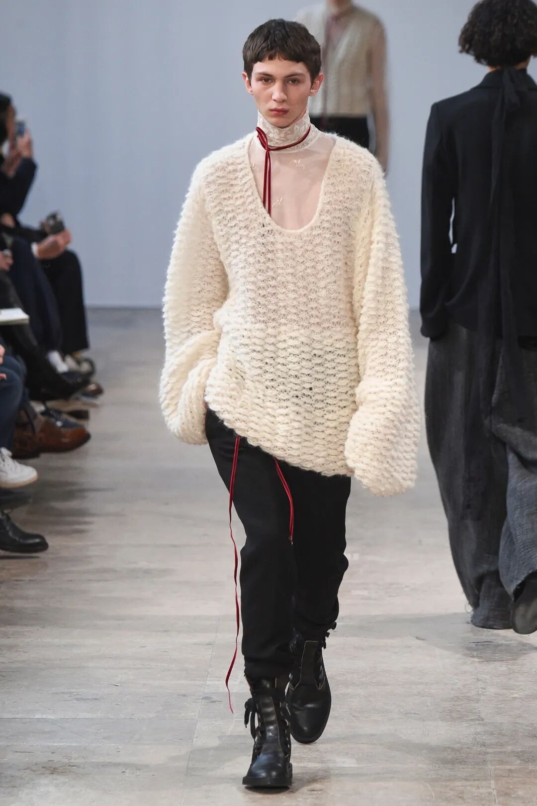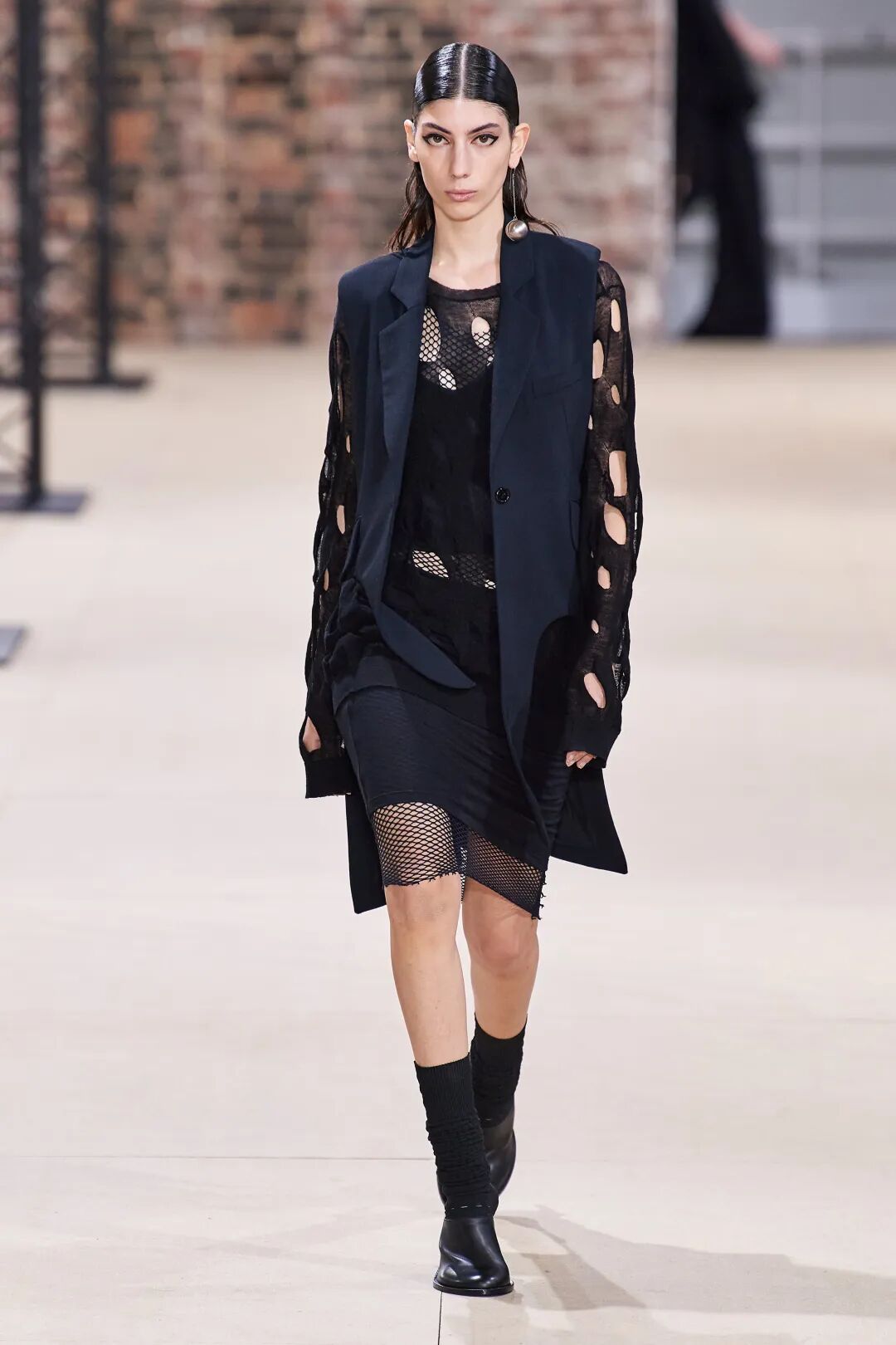 针织衫设计大量采用不对称造型、破洞细节表现颓废破败的暗黑美学风格,同时精致的凹凸肌理和半透明质感突显了服装的细腻与浪漫诗意。