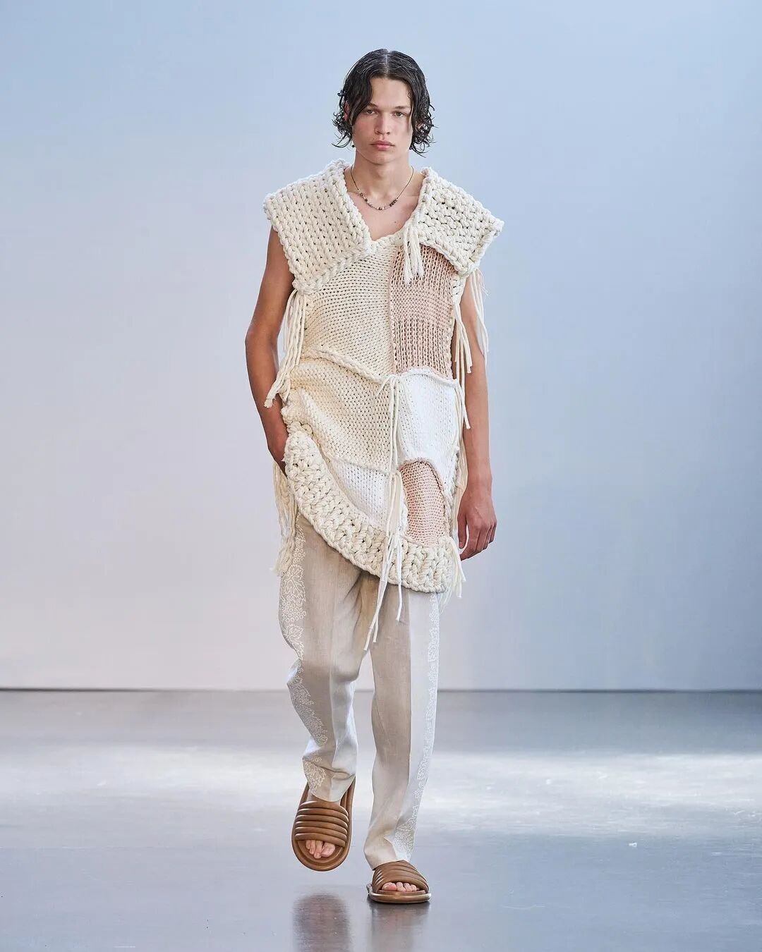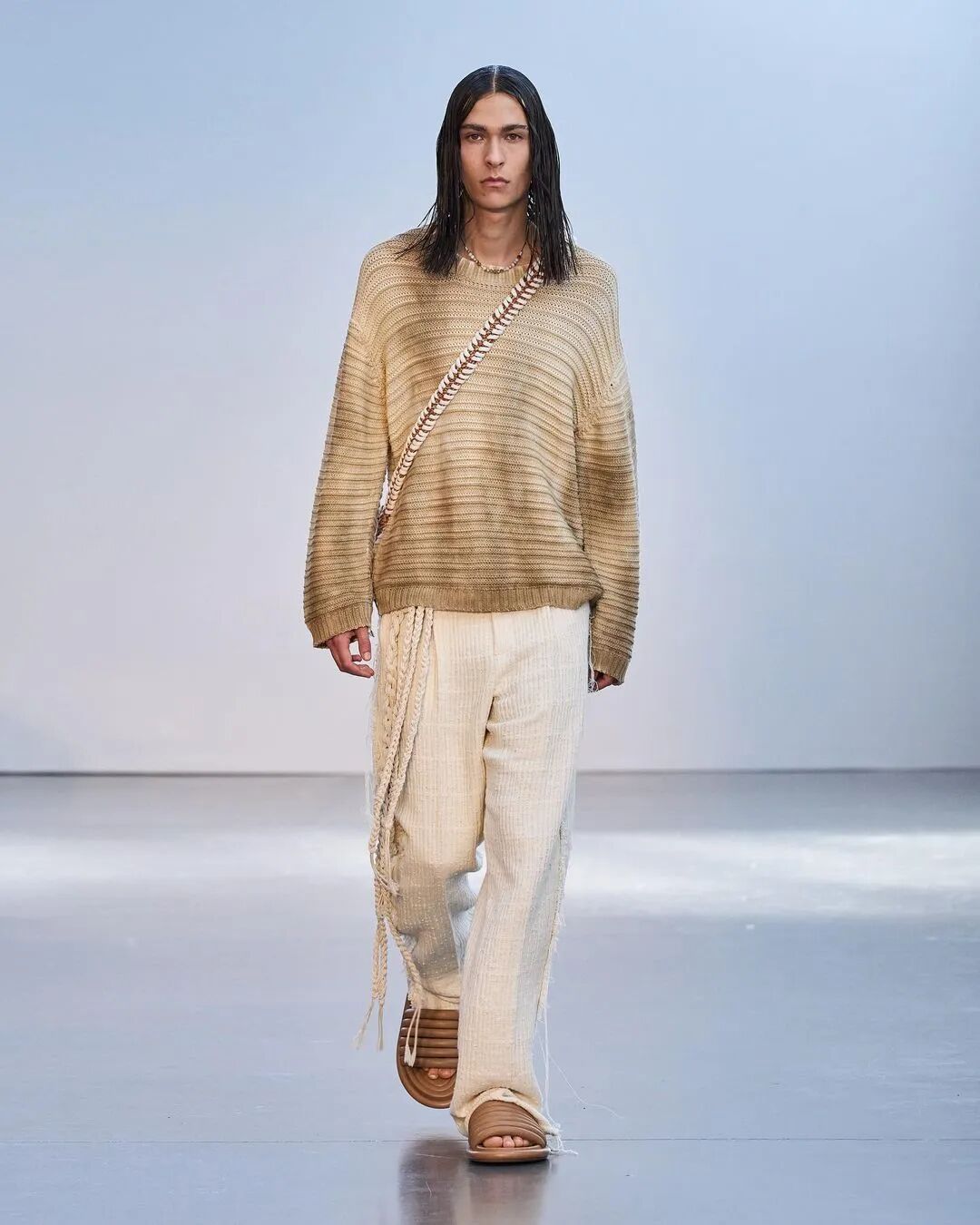 设计师Federico Cina 于2019年创立的同名品牌。Federico与家乡的深厚连结,促使他用服装传达贯穿几代人独一无二的罗马涅美学,用精致优雅诉说罗马涅历史文化的浪漫精髓。怀旧感伤的氛围,突出了手工的敏感性,没有多余的装饰。受自然和可持续性元素的启发,设计呈现的线条干净利落、无可挑剔。