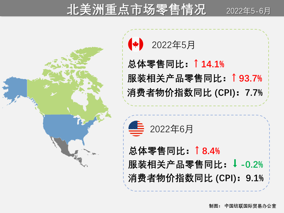 5月,加拿大CPI同比上涨7.7%,达40年最高水平。同月,加拿大零售总额同比增加14.1%;服装类用品销售额为25.1亿加元(约19.6亿美元),在去年低基数效应下大幅增长93.7%。