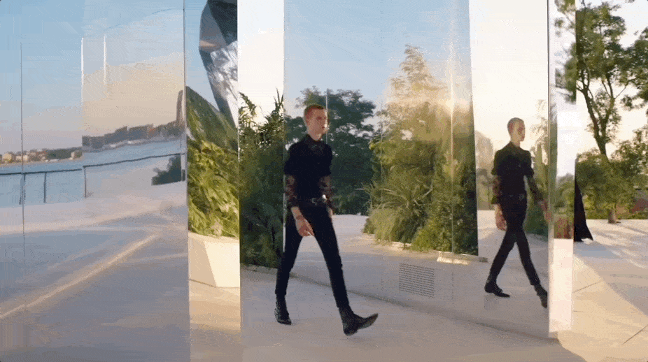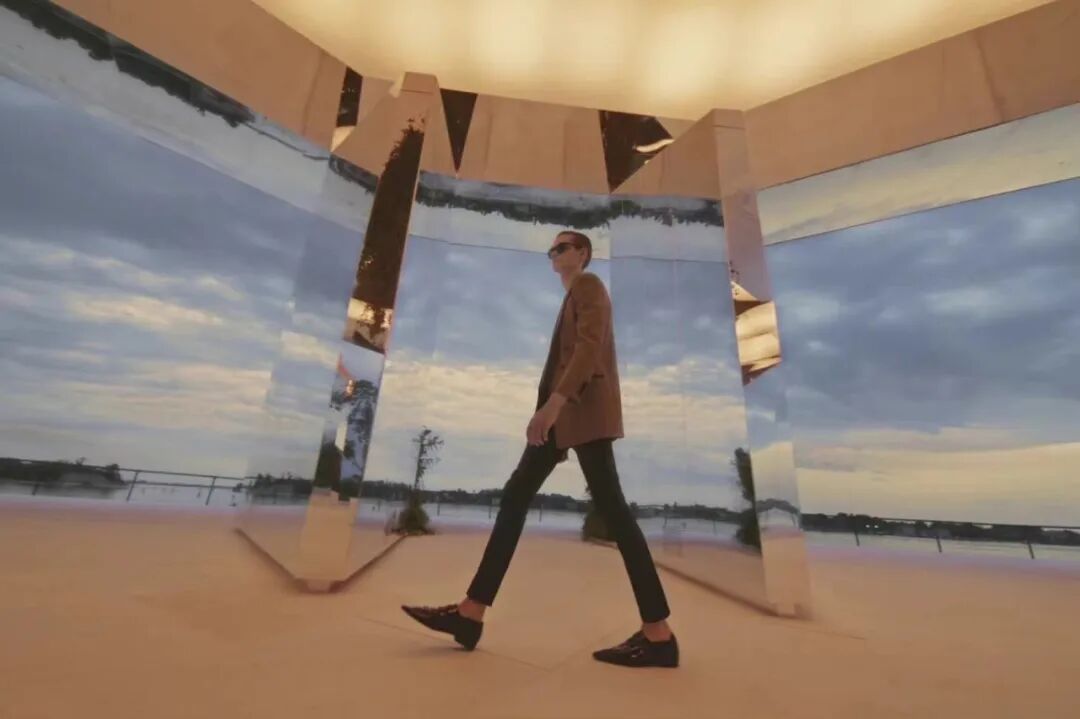 SAINT LAURENT 2022 春夏男装系列大秀,Anthony Vaccarello 邀请到艺术家 Doug Aitken 为秀场打造大型装置艺术。