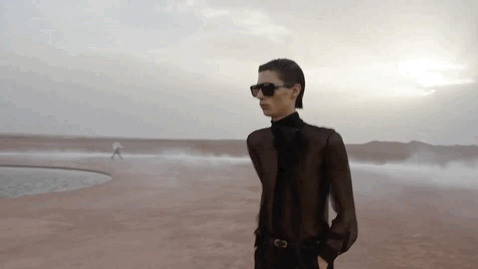 Saint Laurent 2023 春夏男装系列发布秀———大秀选在摩洛哥西南部马拉喀什的 Agafay 沙漠发布。