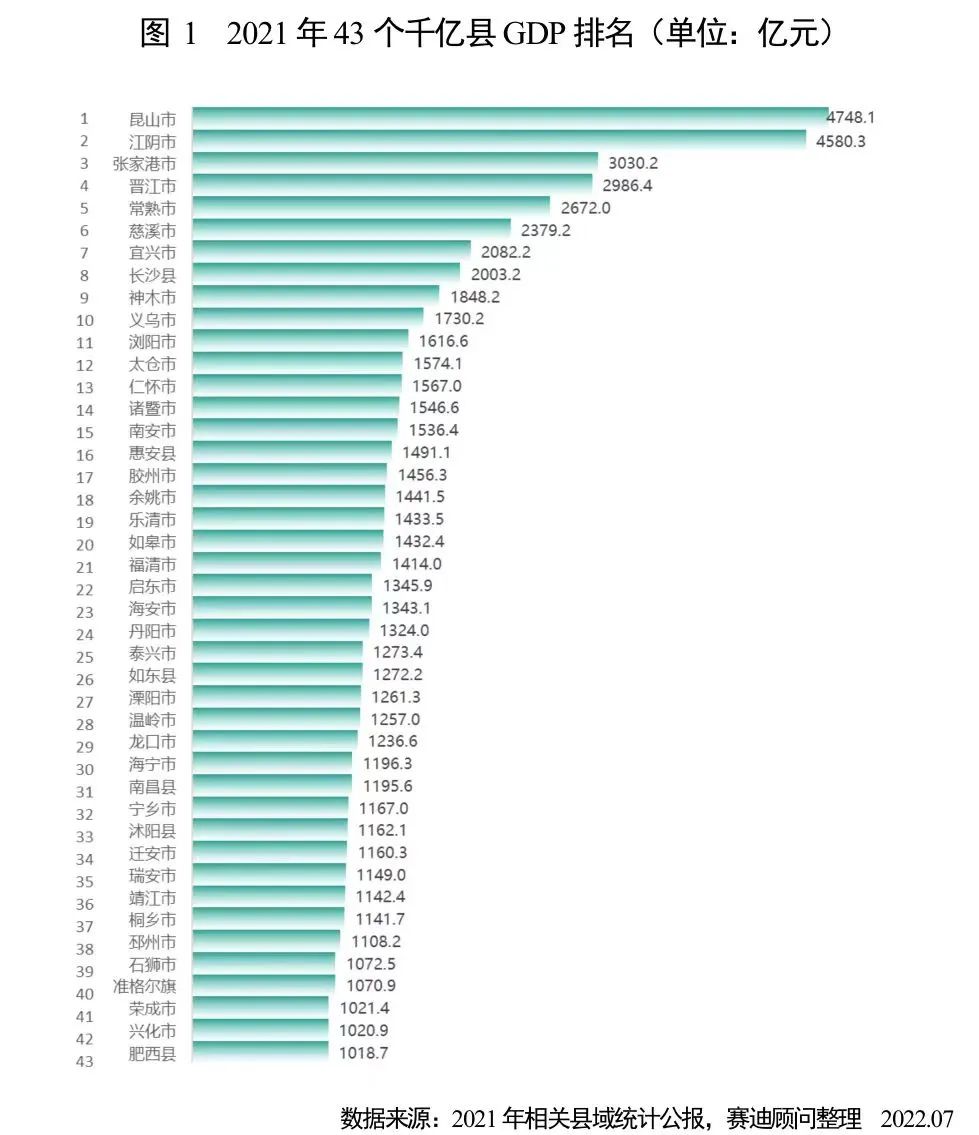 7月20日,在“2022县域经济创新发展论坛”上,由赛迪顾问县域经济研究中心编制的《2022中国县域经济百强研究》(下称报告)正式发布。这是县域经济研究最为权威的排行榜之一,常常成为衡量区域经济的重要参考榜单。