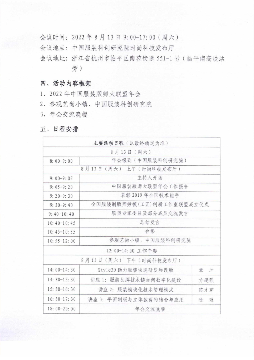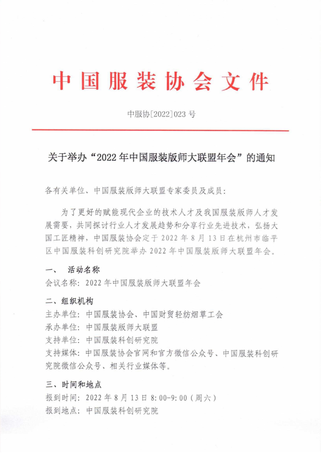 关于举办“2022年中国服装版师大联盟年会”的通知
