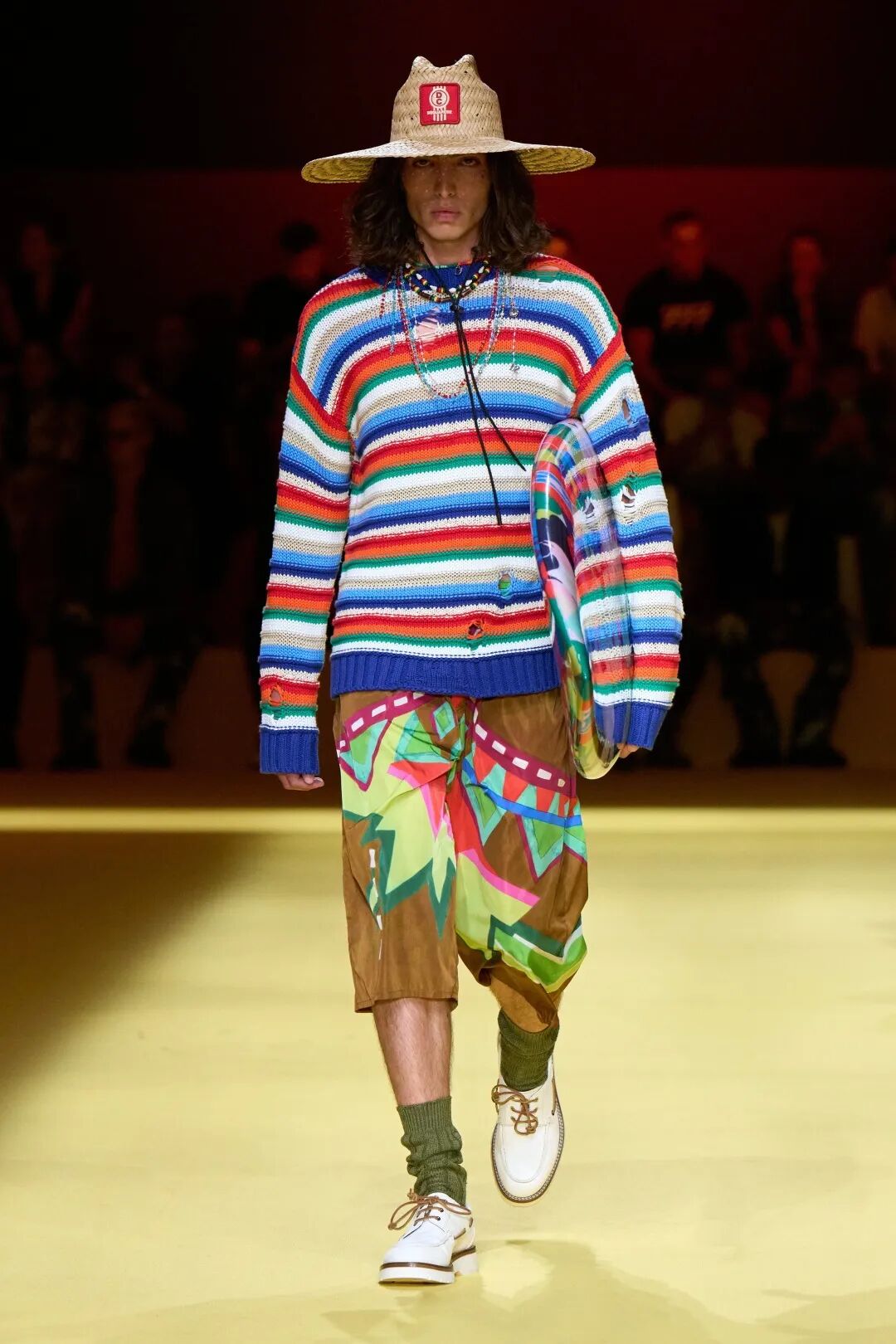 Dsquared2品牌2023春夏男装系列的主题为"summer"&"love",设计的灵感来自于冲浪文化和1970年代的牙买加风情,系列的夏日度假氛围浓郁。