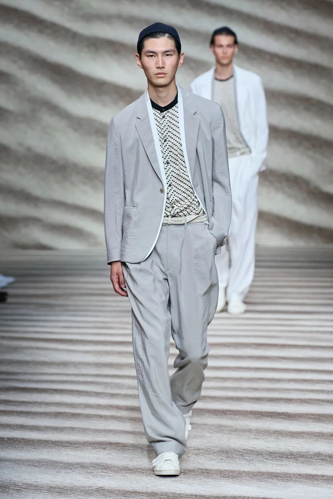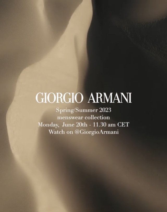 Giorgio Armani的设计是为了更好地服务于穿着者而存在,贯彻实用主义之美,优雅、舒适、平实、动人。2023春夏系列引用"沙"为灵感,并非来自热辣的海滨沙滩,而是出于无垠的沙漠,深沉而稳重。