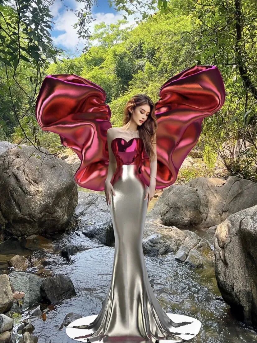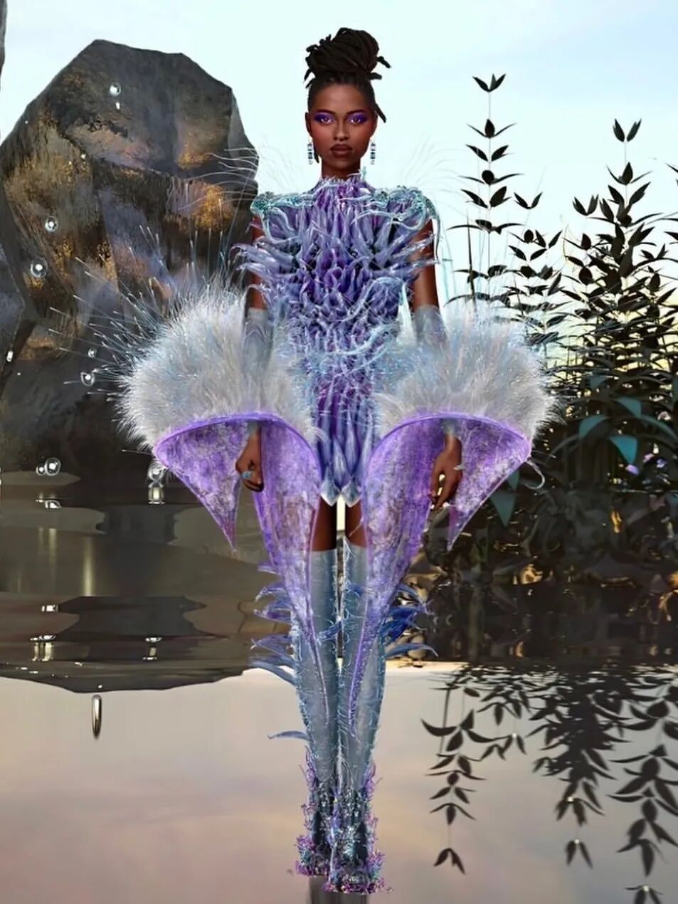 阿姆斯特丹的公司The Fabricant是世界上第一家数字时装公司,于2019年推出全球首件数字时装——彩虹裙(Iridescence Dress),并以9500美元价格成交,由此引发虚拟时装浪潮,也决定了虚拟时装超现实的基因。