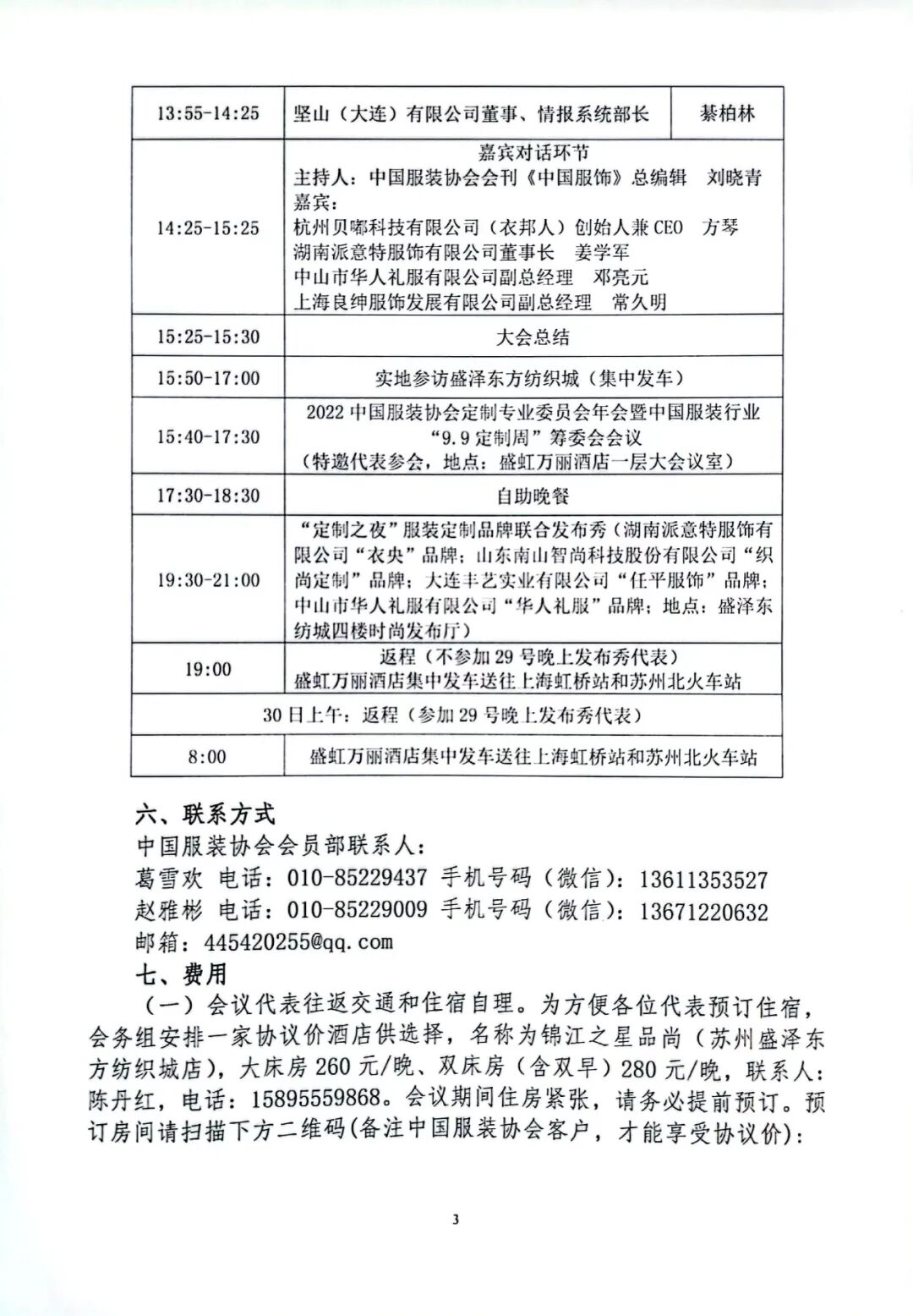 (四)中国服装行业“9.9定制周”筹委会会议;
