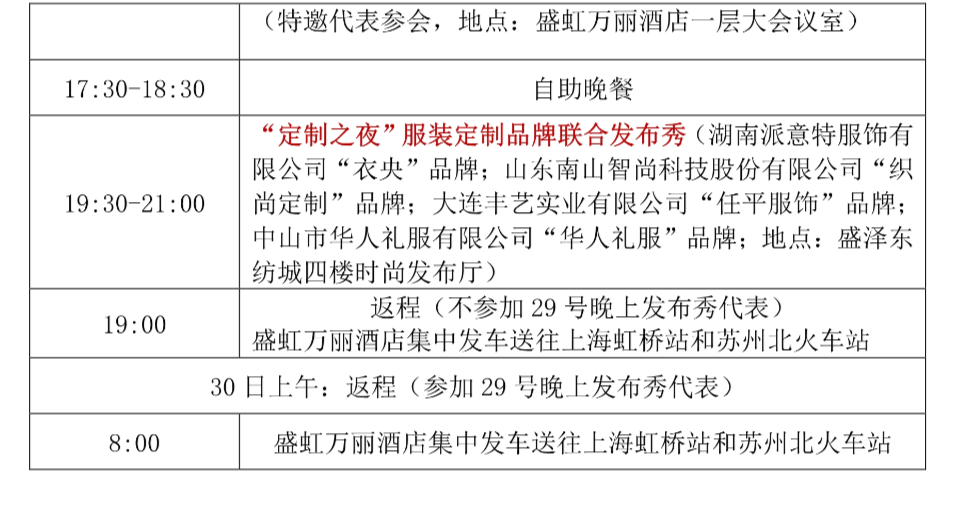 (二)中国服装协会定制专业委员会副主任委员可免费提供盛虹万丽酒店28、29日两晚住宿(一间大床房/双床房)。