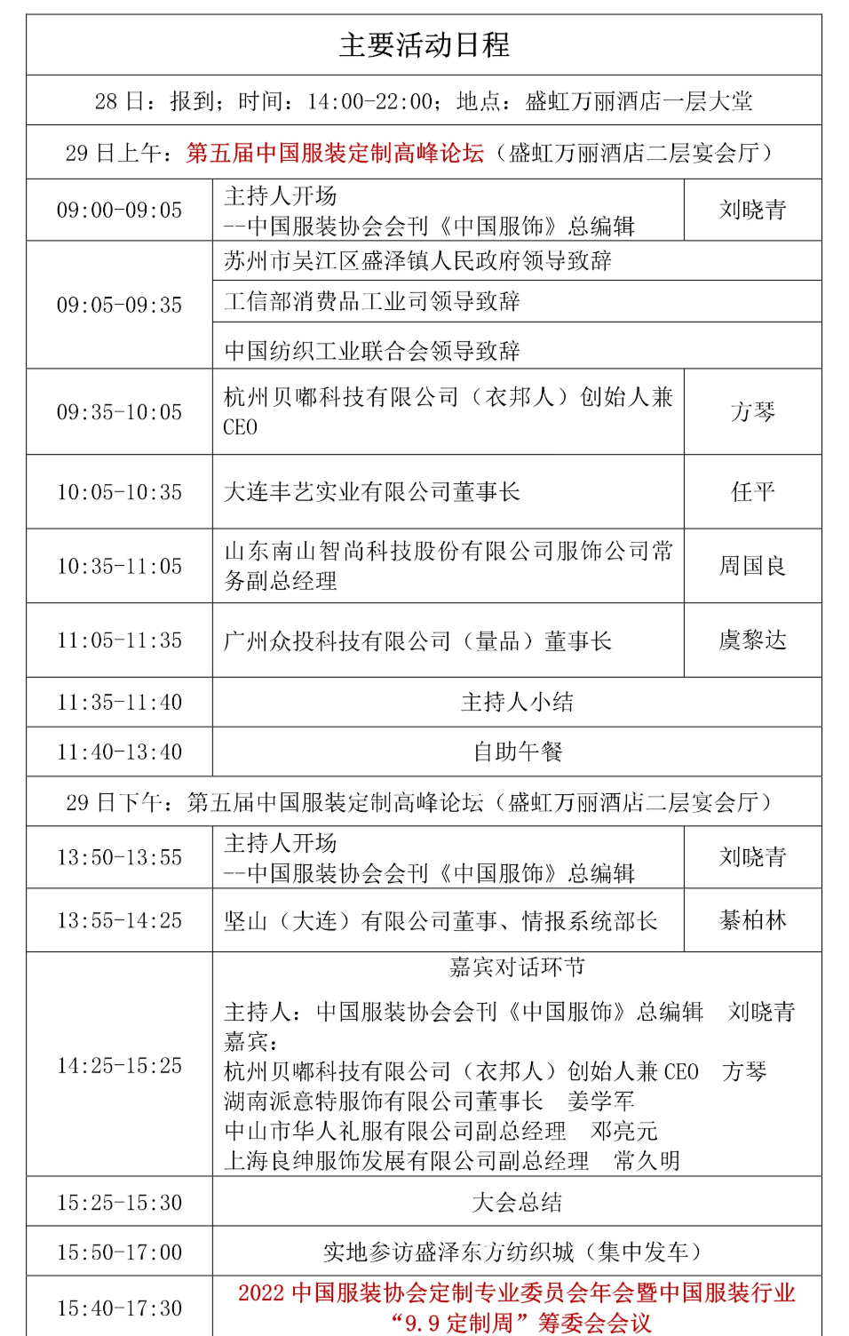名称:第五届中国服装定制高峰论坛暨2022中国服装协会定制专业委员会年会
